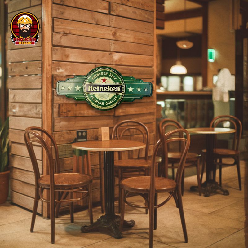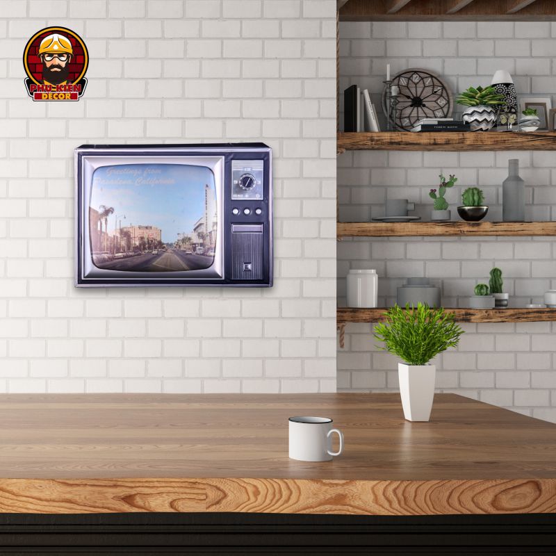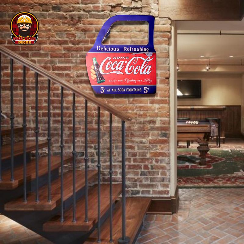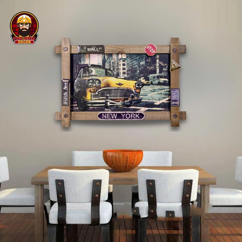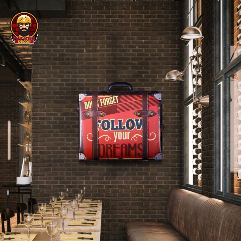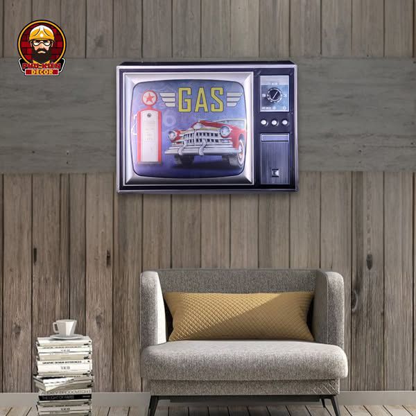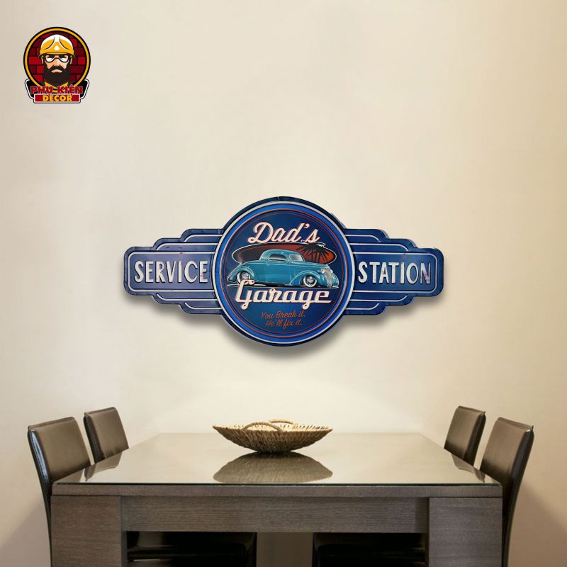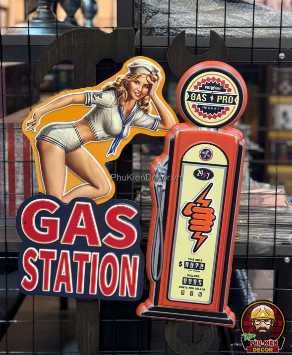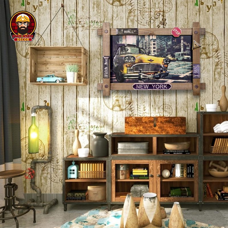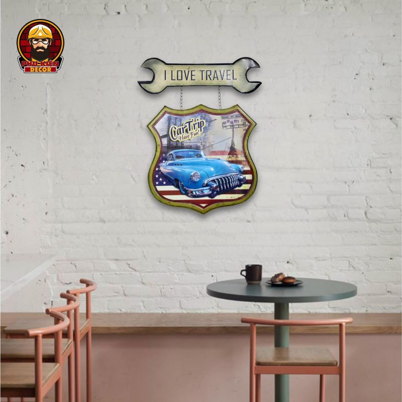 Thiết kế: Họa tiết đa dạng: xe cổ điển, trạm xăng, biển hiệu garage, quán cafe,... mang đậm nét cổ điển Mỹ. Tông màu hoài cổ, kết hợp hiệu ứng giả cổ (vết xước, hoen gỉ nhẹ) để tăng thêm tính chân thực. Được tích hợp móc treo phía sau, dễ dàng gắn lên tường hoặc các bề mặt khác.