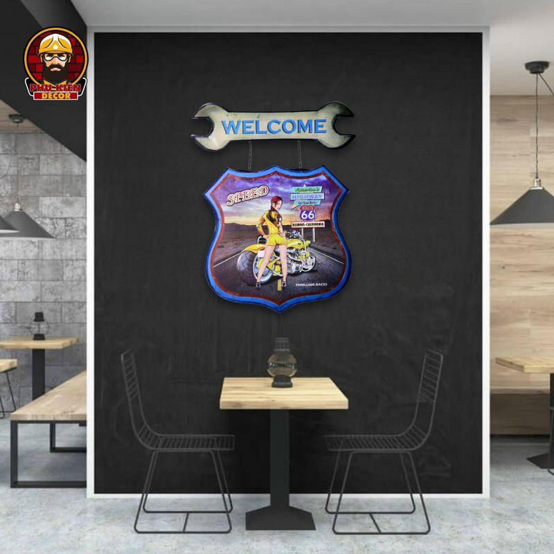 Bảng báo hiệu phong cách Retro/Vintage (decorative sign) - Bảng sắt trang trí treo Tường kiểu Mỹ chủ đề Moto, Biker, Garage, trang trí Cafe, Bar, Nhà Hàng, Shop