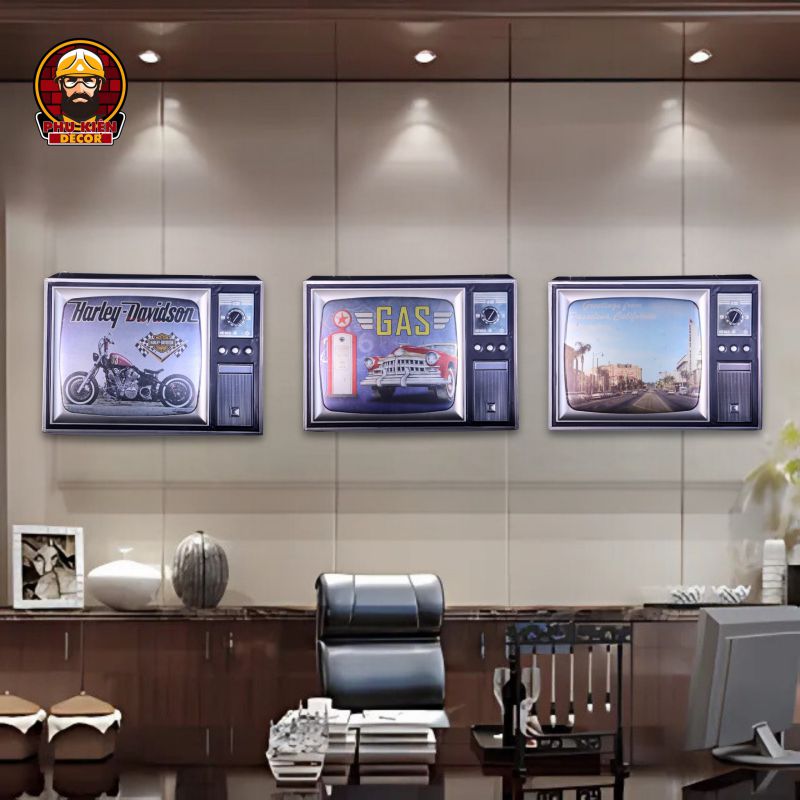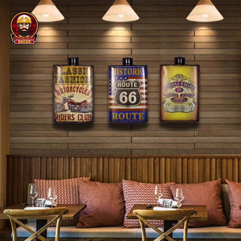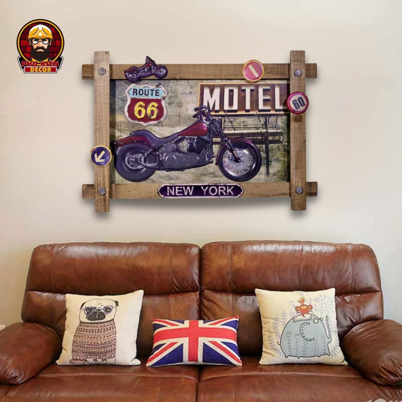 Bảng trang trí Retro/Vintage được thiết kế với phong cách độc đáo, lấy cảm hứng từ văn hóa Mỹ thời kỳ thập niên 50-70. Các mẫu bảng được chế tác tỉ mỉ với chủ đề Moto, Biker, Garage, hoặc các điểm đặc trưng của Mỹ như Route 66, Gas Station, Desert Motel,... Sản phẩm không chỉ là vật dụng trang trí mà còn mang giá trị nghệ thuật và phong cách riêng biệt.