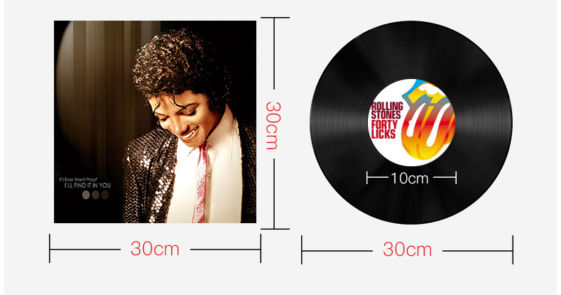 Đĩa than trang trí làm bằng nhựa PVC, có đường kính 30cm. Tranh Album được làm từ giấy Carton, in UV Kĩ thuật số phủ bóng, kích thước 30x30cm.