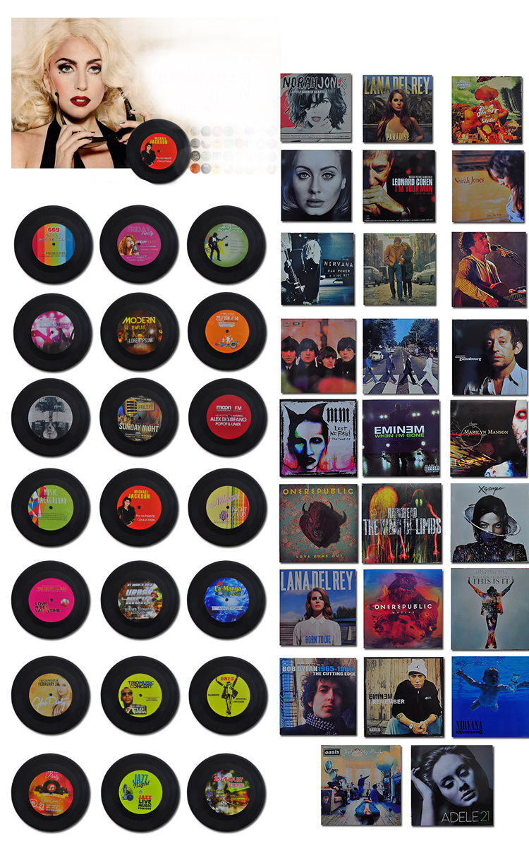 Đi kèm với các mẫu Đĩa than nhựa trang trí là các hình ảnh mô phỏng là các Album, Bìa đĩa. Gắn liền với những Ca sĩ Huyền thoại, những Ca khúc bất hủ... Tạo nên một không gian trang trí vô cùng ấm cúng, sang trọng và đầy hoài niệm