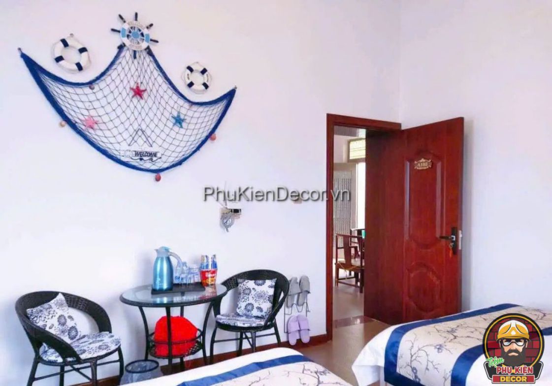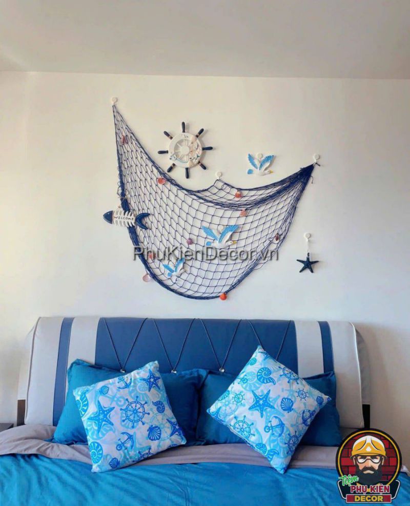 Phong cách biển (Coastal Style): Phong cách biển là một trong những phong cách lý tưởng để sử dụng lưới đánh cá trang trí. Với các sắc thái nhẹ nhàng, tươi mới, cùng những vật dụng trang trí mang hơi thở biển, lưới đánh cá sẽ làm nổi bật chủ đề này, tạo không gian thư giãn và dễ chịu.