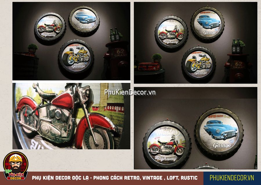 Phụ Kiện Decor chuyên kinh doanh Nắp Bia Treo tường trang trí chủ đề : Moto, Oto dành cho Biker
