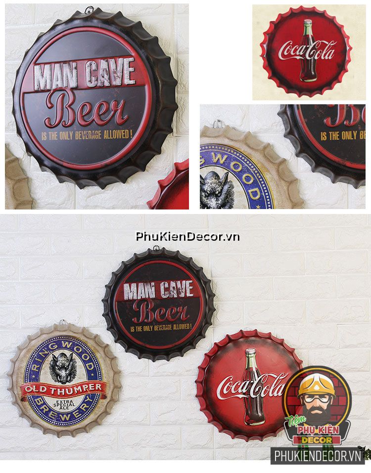 Nắp Bia trang trí với các dạng mẫu Mô tô, Ô tô, Beer... với phong cách Retro, Vintage. Giúp trang trí các không gian cho quán Cafe, Beer, Pub, Baber Shop... hay các Không gian cần sự Nam tính, Mạnh mẽ và Khác biệt. Việc Trang trí các bức tường cho Quán Cafe, Beer sẽ trở nên dễ dàng hơn khi Bạn đã sử dụng Nắp Beer Decor, thay thế cho các Bức tranh thông thường.