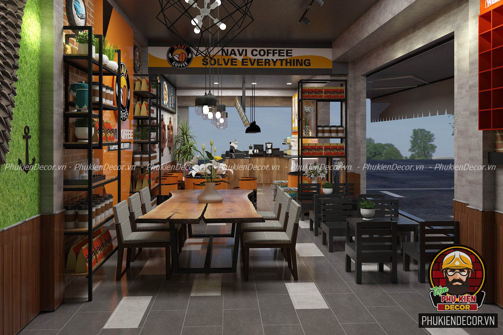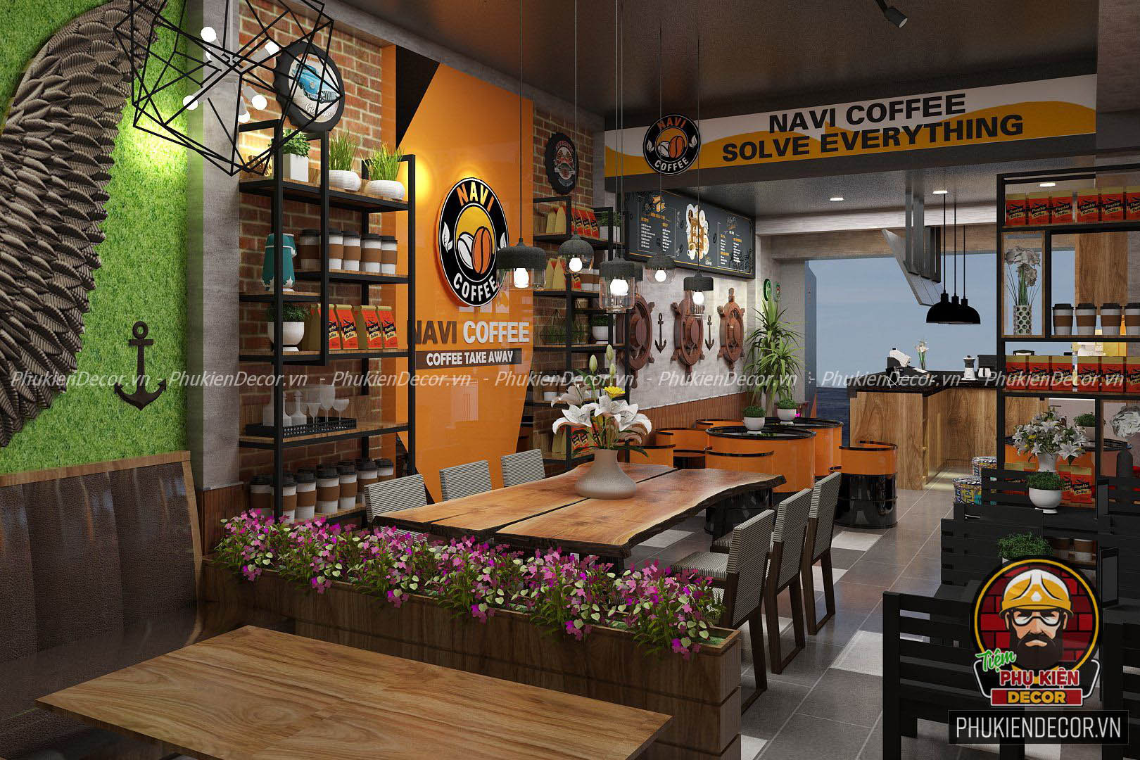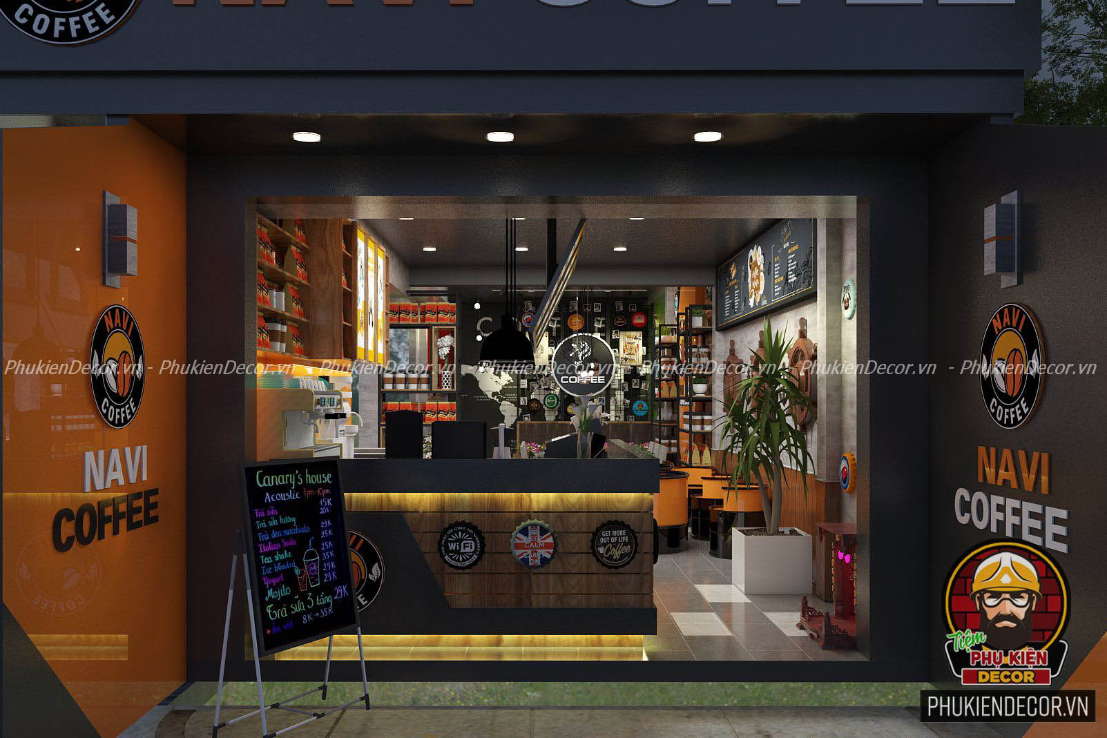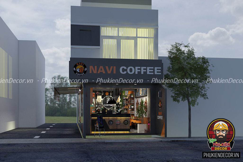 Mẫu thiết kế quán Cafe nhỏ đẹp, 2 mặt tiền ấn tượng