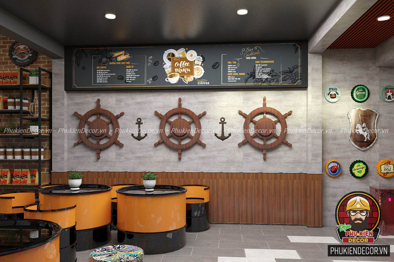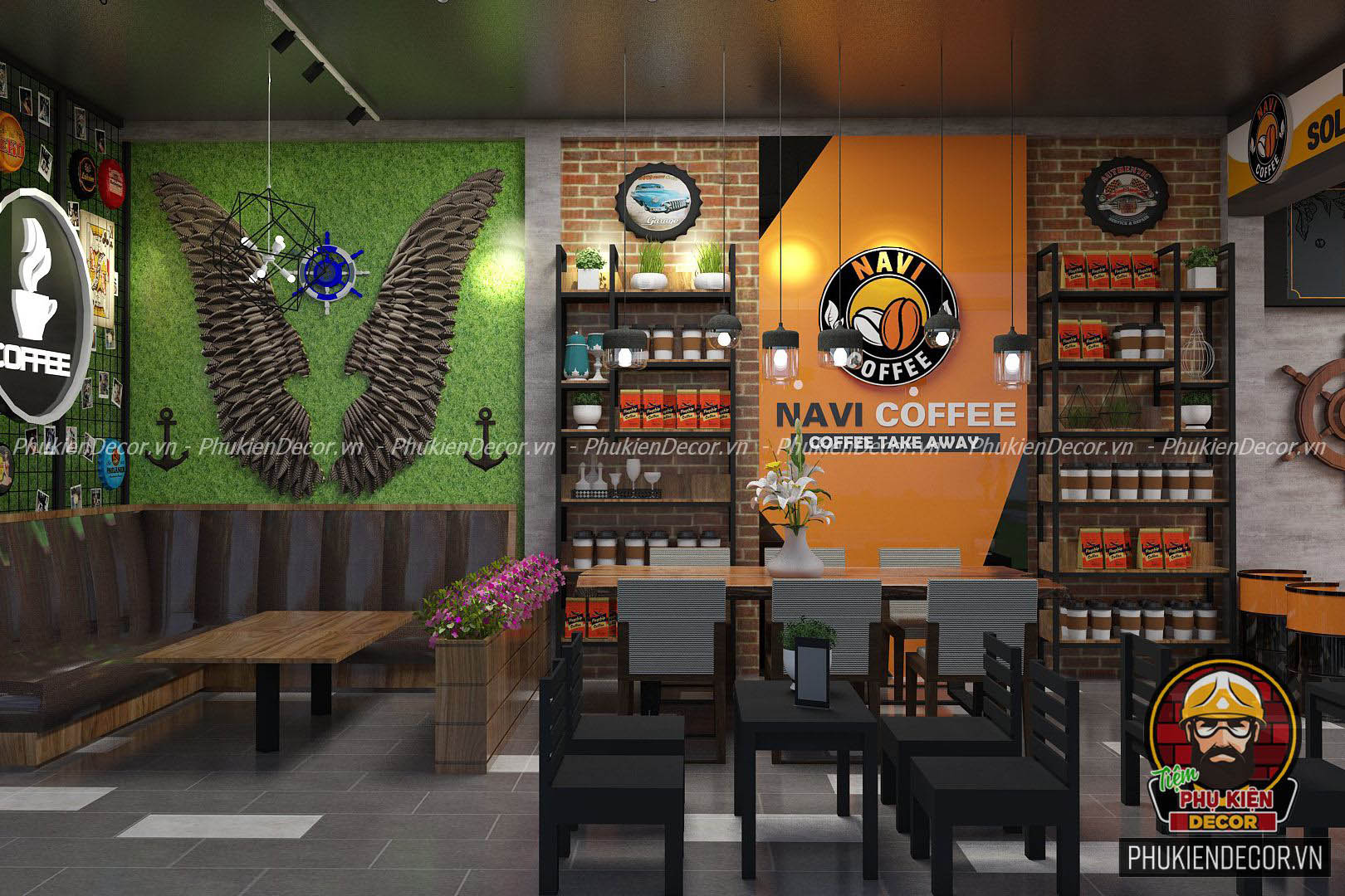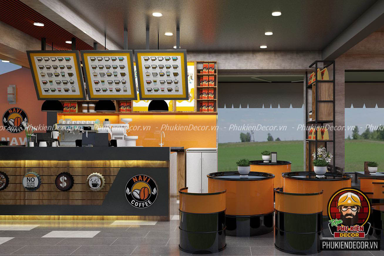 Mẫu thiết kế quán Cafe nhỏ đẹp, 2 mặt tiền ấn tượng