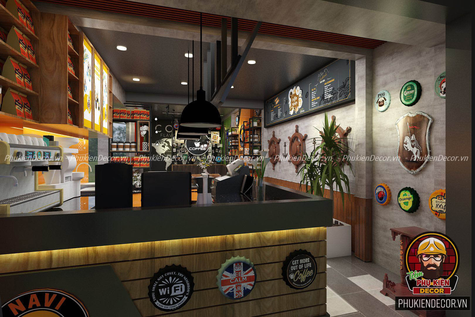 Phụ Kiện Decor chia sẻ đến các Bạn Mẫu thiết kế quán Cafe nhỏ đẹp, 2 mặt tiền ấn tượng. Quán cafe nằm trục giao giữa 1 đường giao thông chính, và 1 đường hẻm. Việc trang trí tạo ấn tượng cho Quán là một điều cần thiết để thu hút sự chú ý của Khách đi đường, đồng thời gia tăng tính thẩm mỹ của Quán nhằm giữ chân Khách hàng thân thuộc ghé lại Quán thường xuyên. Mời các Bạn cùng chiêm ngưỡng một số view 3D của Mẫu thiết kế quán Cafe nhỏ đẹp, 2 mặt tiền.