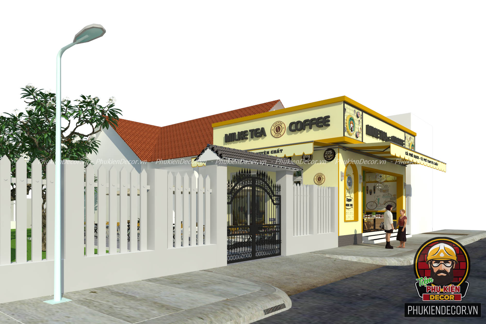 Mô hình Quán Trà sữa nhỏ đẹp, dễ thương được thiết kế đơn giản, giải pháp trang trí chủ yếu tập trung vào Sơn nước, Bảng hiệu, Đồ nội thất, và các Đồ Decor treo tường