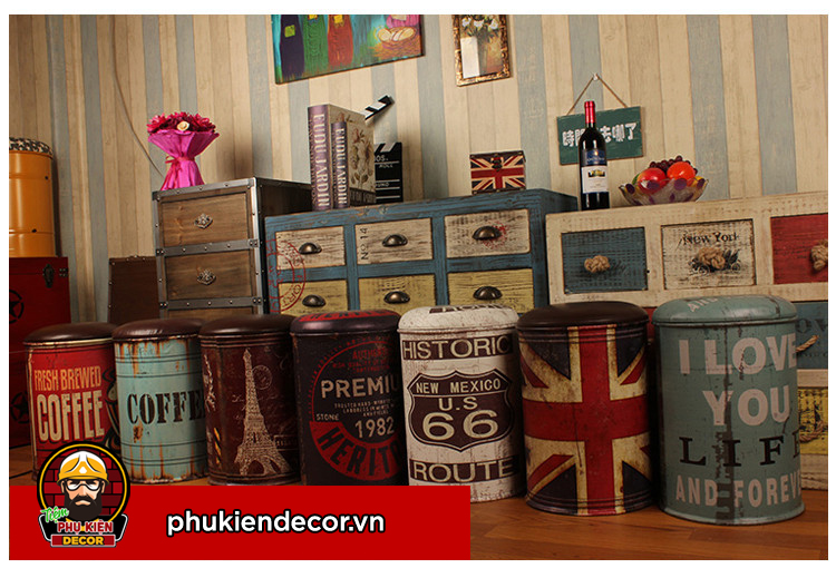Đôn Thùng Phuy Retro Trang Trí