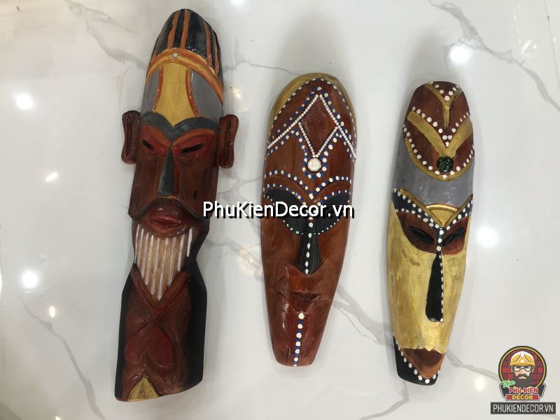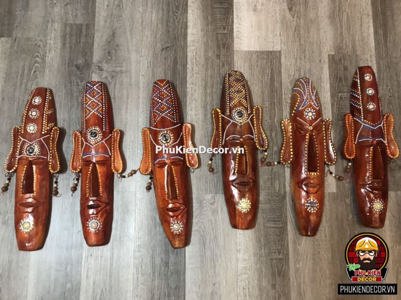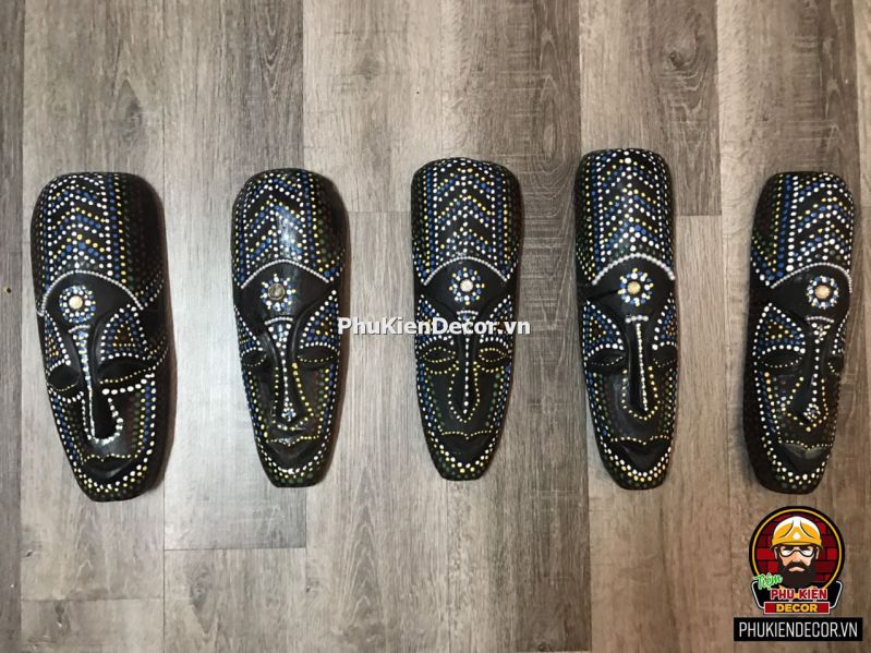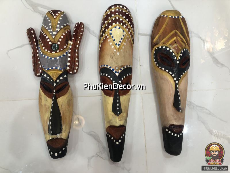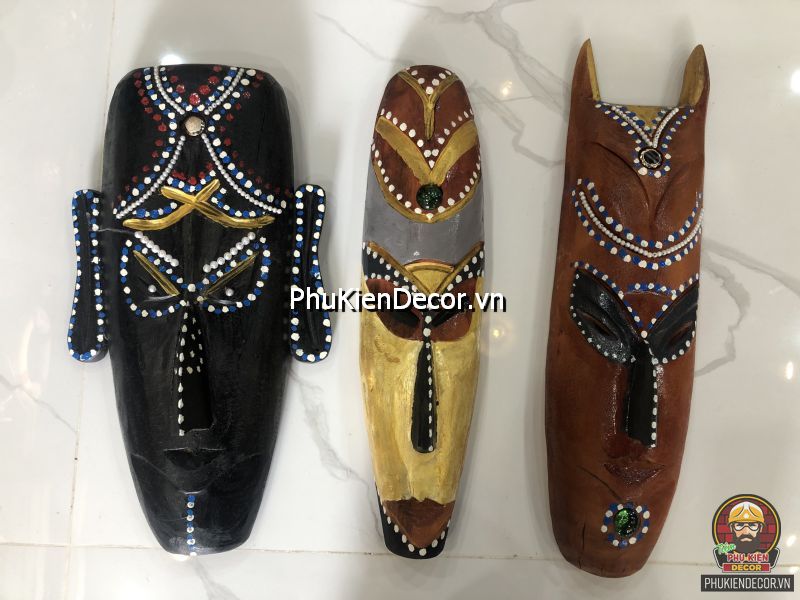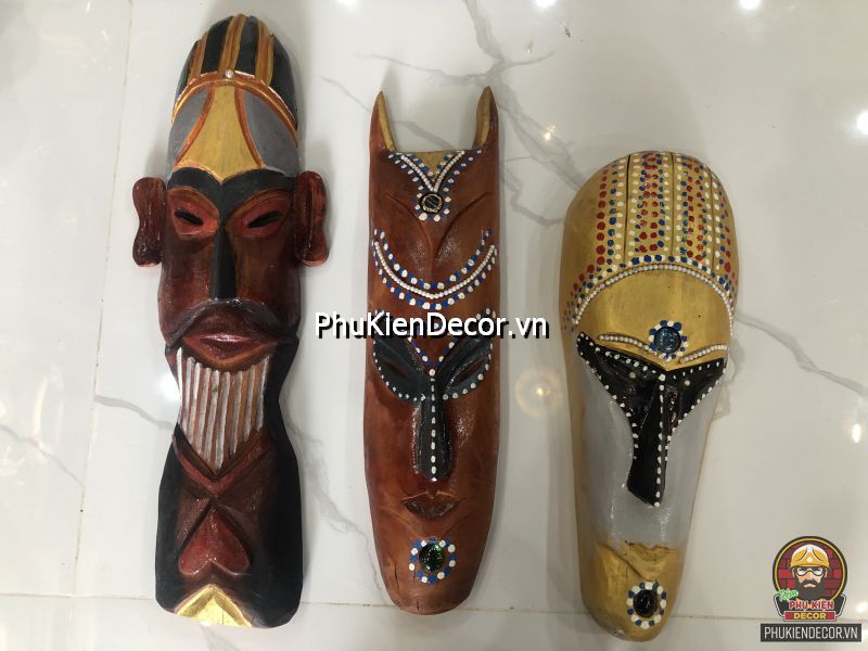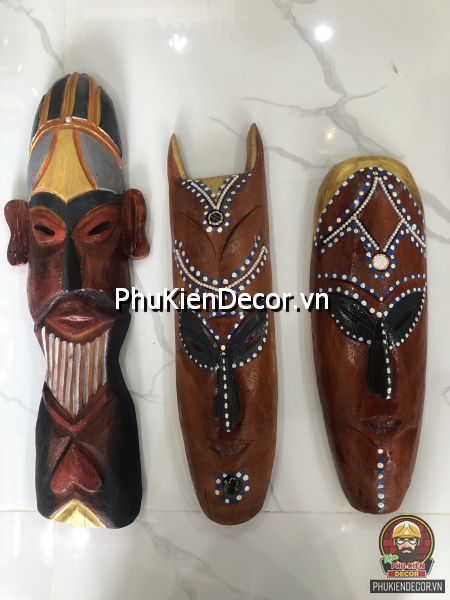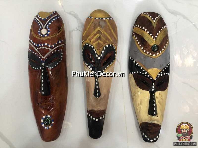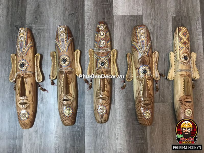 Sản phẩm được khắc bằng gỗ độc đáo, tinh xảo với việc tạo hình nổi bật bởi những nét mạnh mẽ, dứt khoát và sơn vẽ tay thủ công vô cùng đặc sắc và tinh tế. Bởi sử dụng thủ công bằng tay kết hợp vẽ sơn dầu thủ công nên nó có độ bền rất cao, mặt nạ thổ dân với mỗi kích thước khác nhau tượng trưng cho các sắc thái đặc trưng riêng với những họa tiết trang trí màu sắc sặc sỡ.