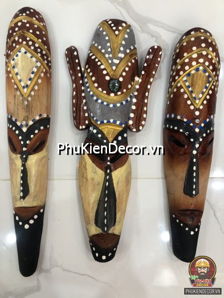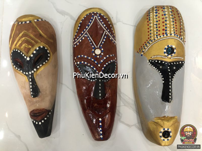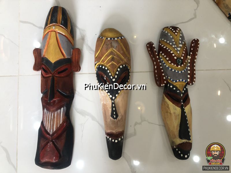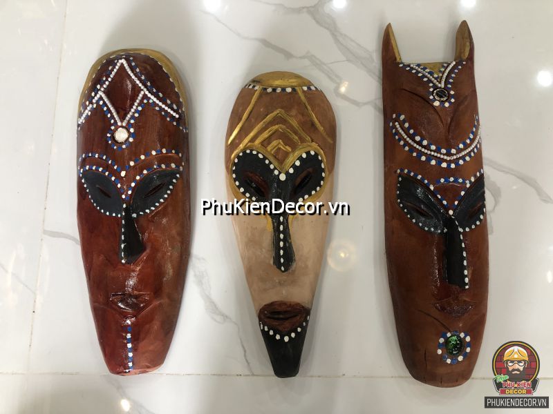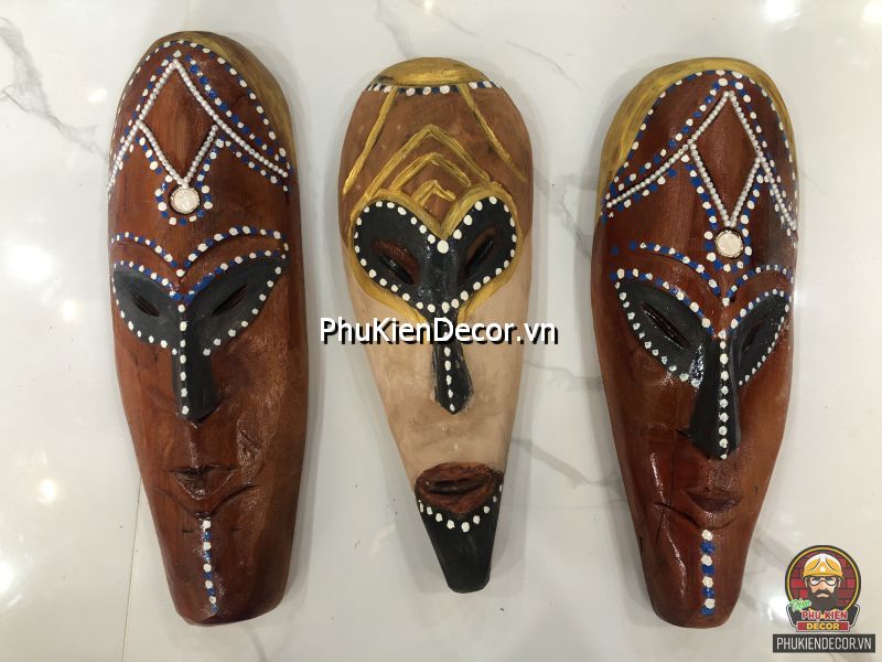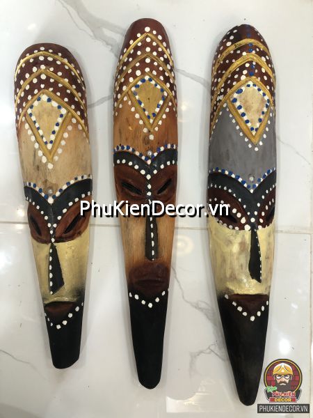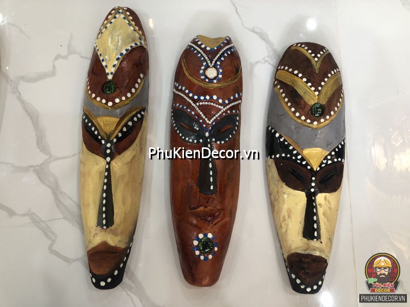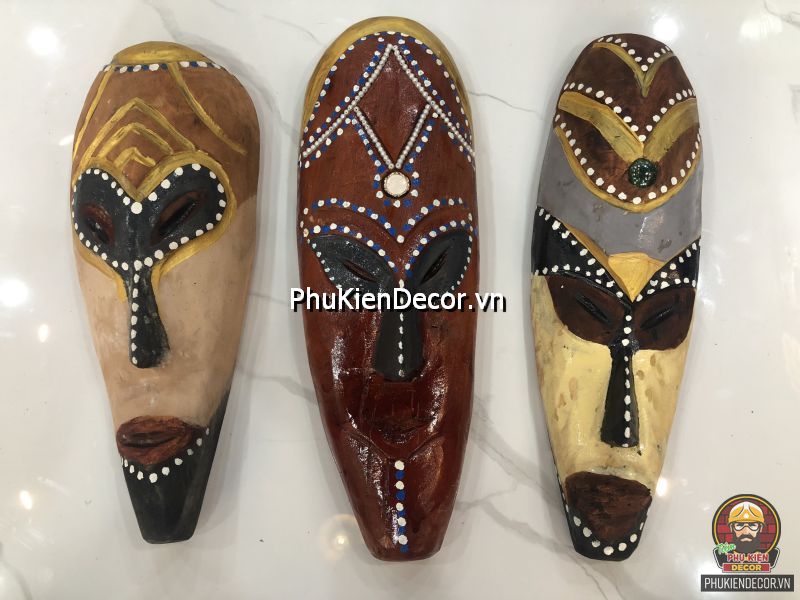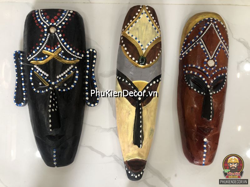 Sản phẩm được khắc bằng gỗ độc đáo, tinh xảo với việc tạo hình nổi bật bởi những nét mạnh mẽ, dứt khoát và sơn vẽ tay thủ công vô cùng đặc sắc và tinh tế. Bởi sử dụng thủ công bằng tay kết hợp vẽ sơn dầu thủ công nên nó có độ bền rất cao, mặt nạ thổ dân với mỗi kích thước khác nhau tượng trưng cho các sắc thái đặc trưng riêng với những họa tiết trang trí màu sắc sặc sỡ.