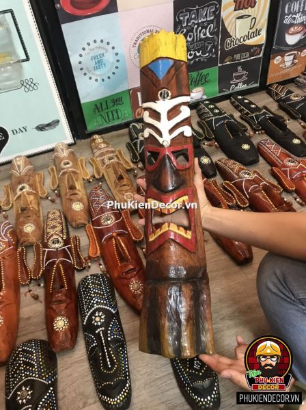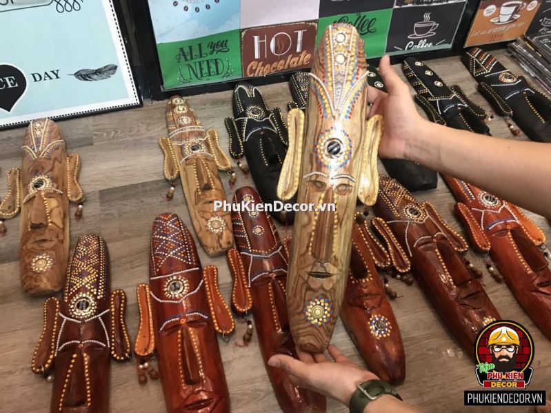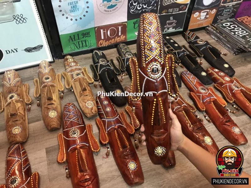 Mặt nạ thổ dân Châu Phi trang trí sẽ mang đến vẻ đẹp mạnh mẽ, ấn tượng. Thích hợp với những không gian Trẻ trung, Phá cách và đậm chất Công Nghiệp. Không chỉ tạo điểm nhấn, gia tăng tính thẩm mỹ cho không gian quán, mà còn thể hiện cá tính, sở thích và niềm đam mê những món đồ độc lạ.