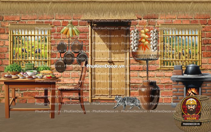 Quán ăn đồng quê yêu cầu một không gian đầy sự mộc mạc, gần gũi và ấm áp, và tranh dán tường là công cụ lý tưởng để đạt được điều này. Các bức tranh tre vàng, tre nứa lá, và vách gỗ cũ sẽ giúp tạo nên không gian tự nhiên và đậm chất đồng quê.