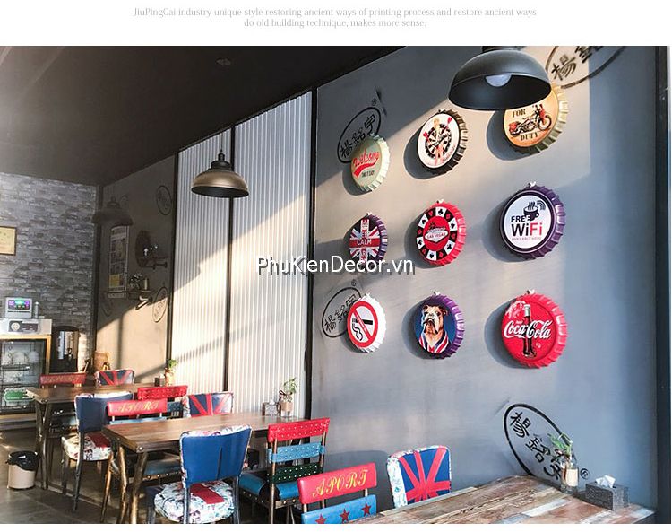 Đồng thời, Bạn cũng có thể setup thêm các món đề Decor treo tường đi kèm phù hợp với phong cách thiết kế của quán để không gian thêm phần hài hòa và hoàn hảo hơn. Một số món đồ trang trí giúp Bạn chinh phục Khách hàng, giúp đem lại Doanh thu và lợi nhuận cao cho Quán