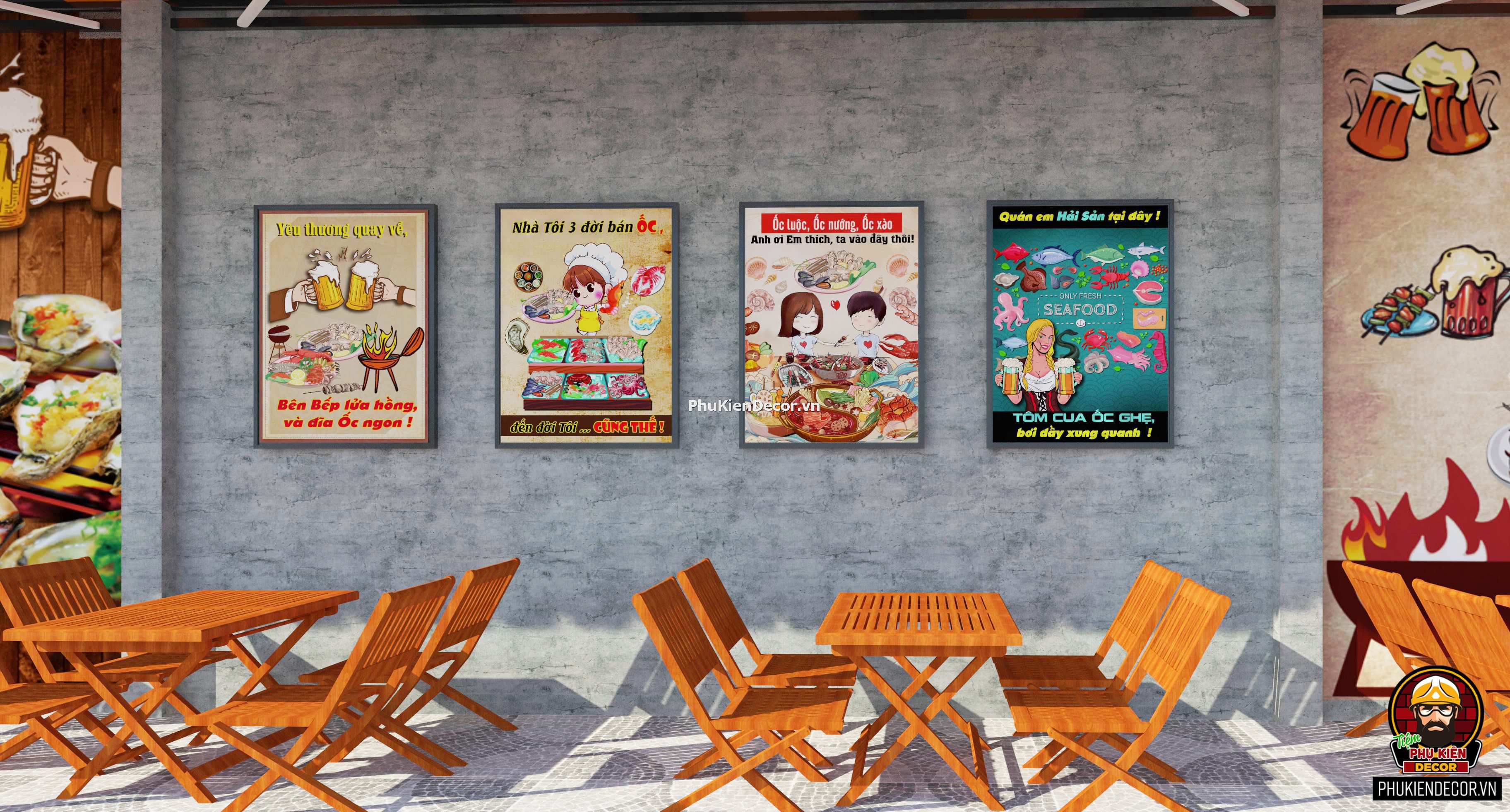 Bộ sưu tập Tranh dán tường 3D mang đến sự lựa chọn đa dạng, phù hợp với mọi phong cách các quán, Phụ Kiện Decor mời bạn tham khảo tranh dán tường 3D quán Lẩu nướng Ăn Vặt mới nhất, được ưa chuộng nhất. Lựa chọn tranh, bạn sẽ sở hữu xu hướng nổi bật nhất, thổi hồn vào không gian một làn gió mới. Những vị khách ghé thăm càng thêm ấn tượng về Quán và Thương hiệu của Bạn.