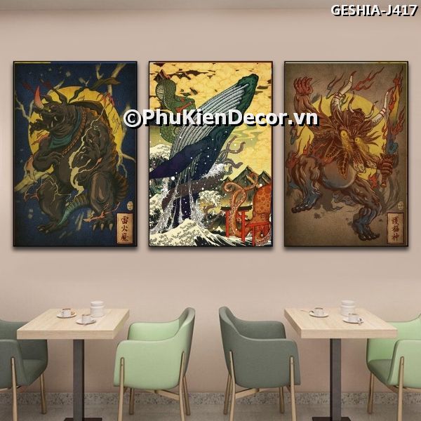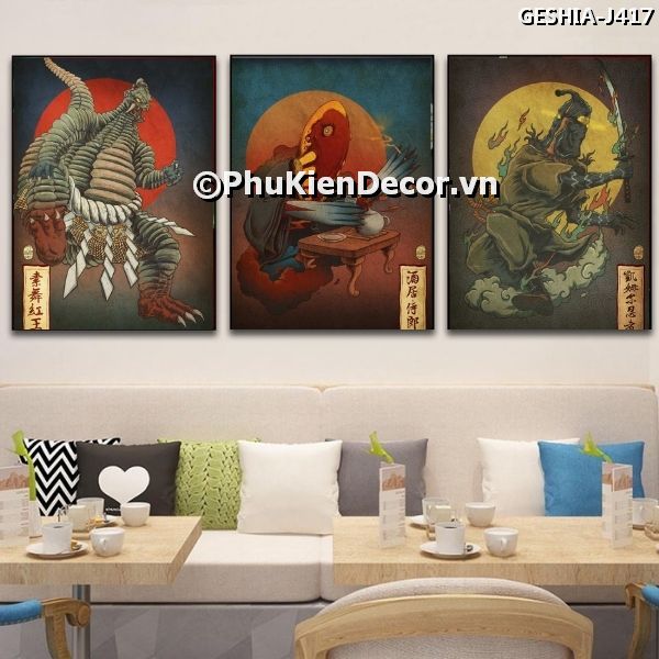 Tranh treo tường trang trí quán ăn, nhà hàng Nhật Bản chủ đề thần thoại, cố tích huyền bí, ấn tượng, độc đáo