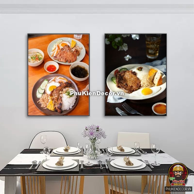 Cơm tấm là món ăn đặc trưng của Sài Gòn, mang đậm nét văn hóa ẩm thực miền Nam. Với hình ảnh chân thực và sắc nét, tranh treo tường cơm tấm không chỉ phản ánh được hương vị đặc biệt của món ăn mà còn làm nổi bật không gian. Mỗi bức tranh về cơm tấm sẽ mô tả đầy đủ những chi tiết hấp dẫn như sườn nướng thơm lừng, chả trứng đầy màu sắc, dưa leo tươi mát, cùng các gia vị, nước mắm đặc trưng. Những bức tranh này giúp bạn mang đến một không gian không chỉ đẹp mắt mà còn đậm chất Việt Nam, giúp quán ăn, nhà hàng hay không gian gia đình trở nên sinh động hơn.