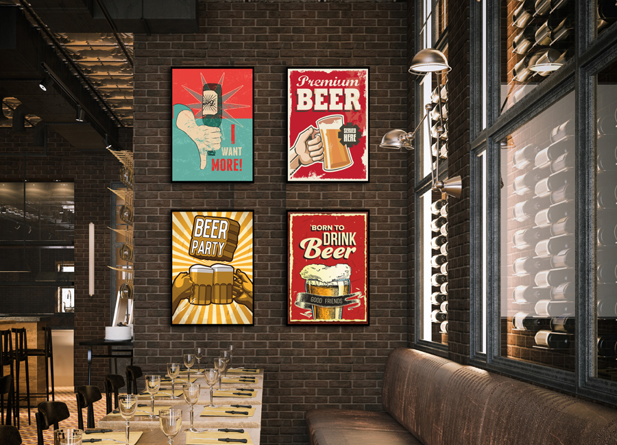 Tranh treo quán trang trí kiểu quán Bia phong cách Tây