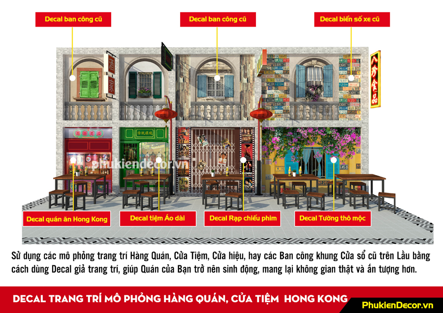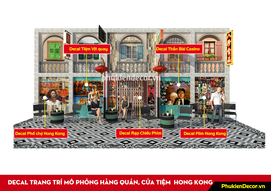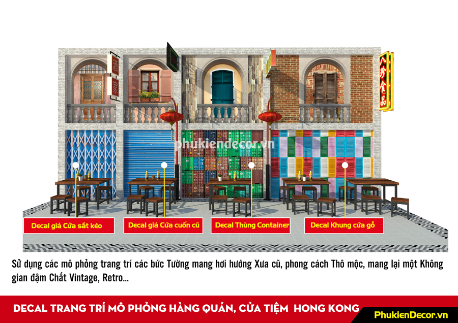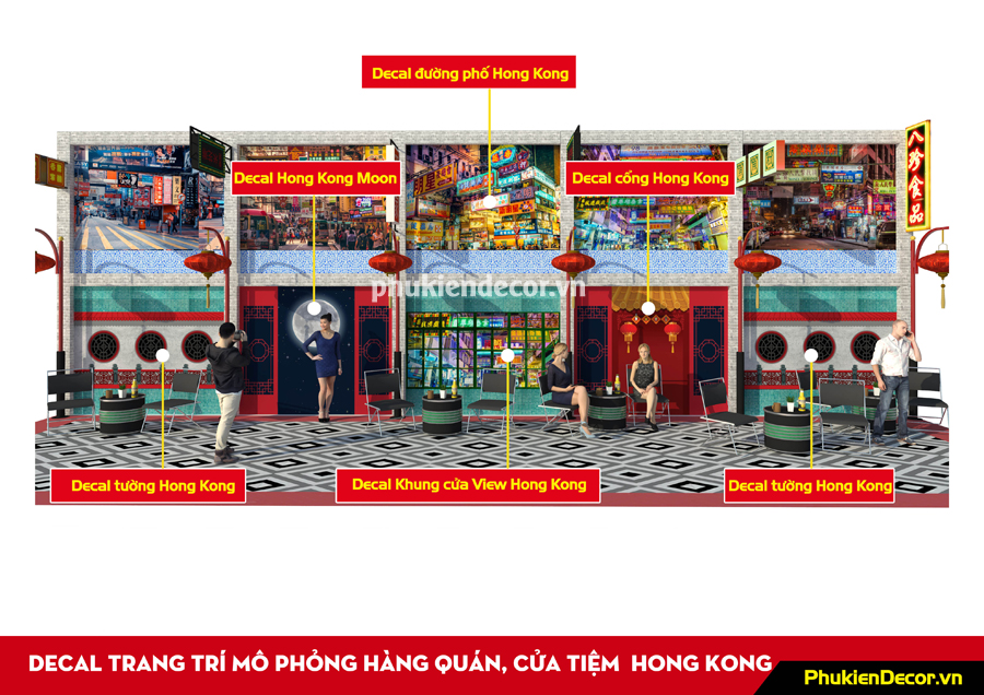 9. Decal trang trí Quán theo Phong cách Hong Kong