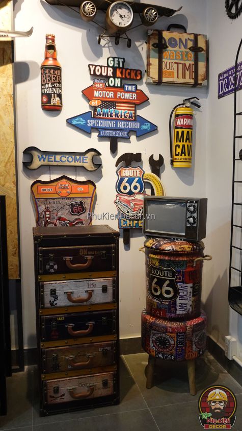 Garage: Đối với garage, một không gian thường bị bỏ qua, chúng tôi biến nó thành một khu vực không chỉ dùng để sửa chữa mà còn là nơi trưng bày, với các sản phẩm trang trí như biển hiệu xe cổ, đồng hồ tường phong cách công nghiệp, và các đồ decor độc đáo khác.