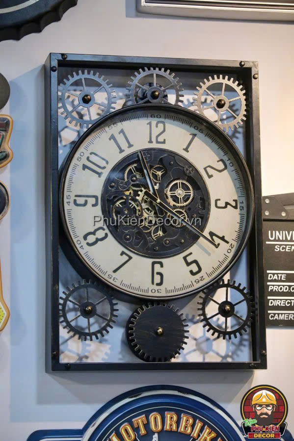 - Đồng hồ treo tường: Một chiếc đồng hồ treo tường không chỉ để xem giờ mà còn khẳng định gu thẩm mỹ. Thiết kế đa dạng từ cổ điển, vintage đến hiện đại, industrial. Đặc biệt, với quán billiard hay garage, các mẫu đồng hồ bánh răng, đồng hồ kim loại nặng sẽ rất “chất”.