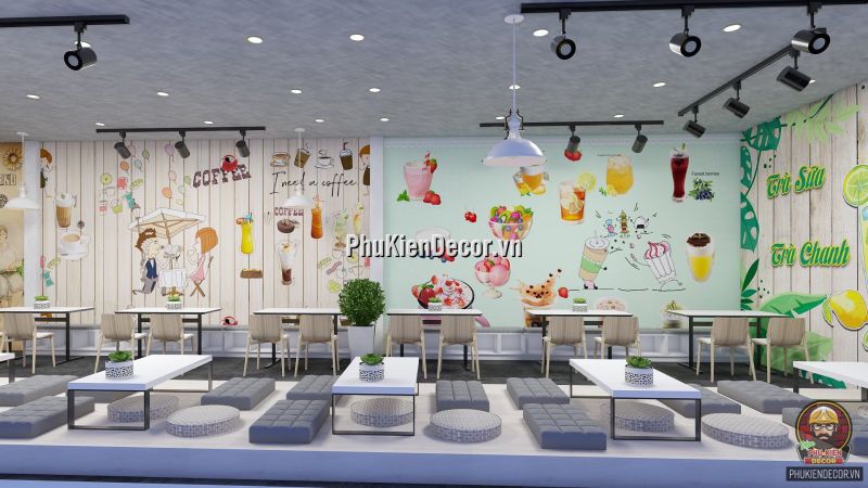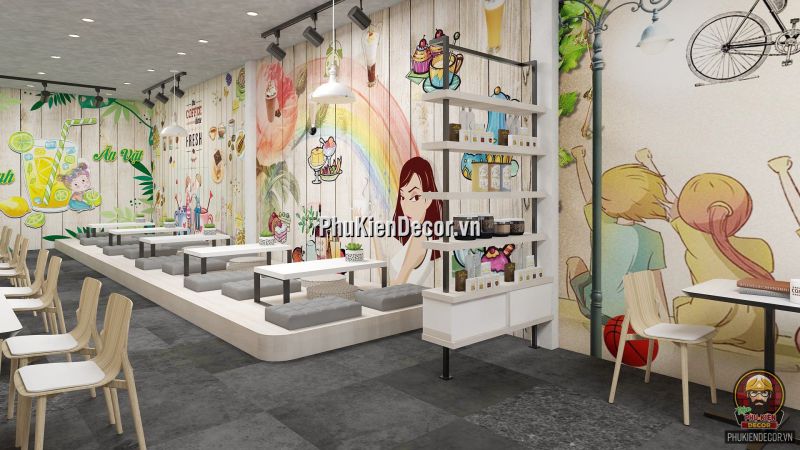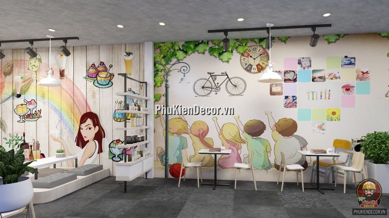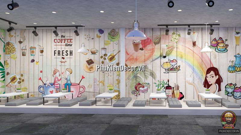 Đây là một thể loại tranh trang trí, dành cho các Không gian nội thất. Mang lại sự ấn tượng, độc đáo và phá cách. Tranh dán tường 3D trang trí cho Quán Cafe, Ăn Vặt, Trà Chanh, Trà Sữa với những hình ảnh, thông điệp đầy màu sắc. Tạo nên một background độc đáo. Rất thích hợp là điểm chụp hình, checkin cho Khách hàng.