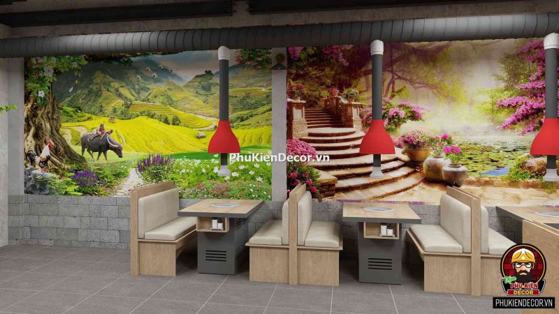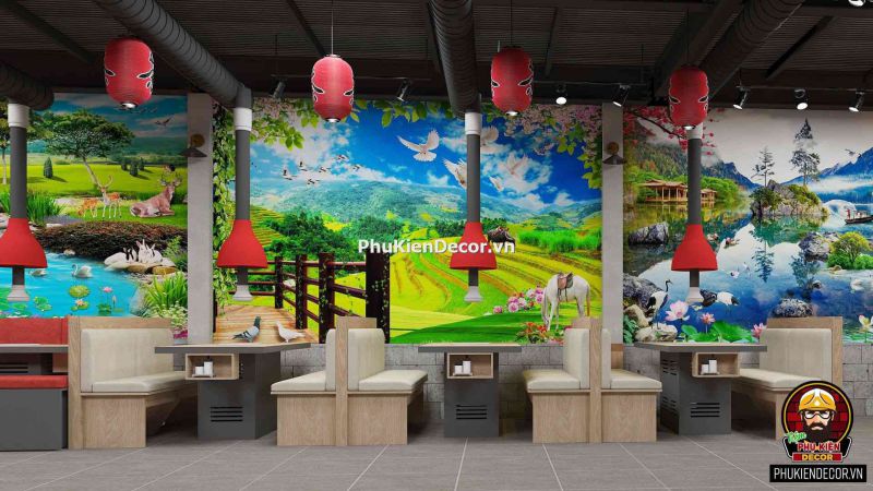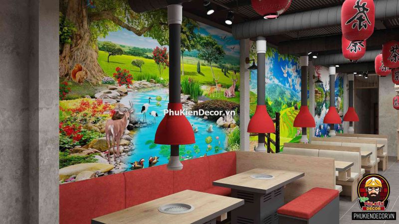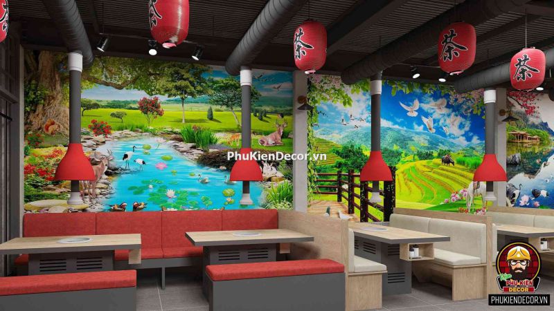 Đây là một thể loại tranh trang trí, dành cho các Không gian nội thất. Mang lại sự ấn tượng, độc đáo và phá cách. Tranh dán tường 3D trang trí cho Quán Lẩu, Quán Nướng với những hình ảnh, thông điệp đầy màu sắc. Tạo nên một background độc đáo. Rất thích hợp là điểm chụp hình, checkin cho Khách hàng.