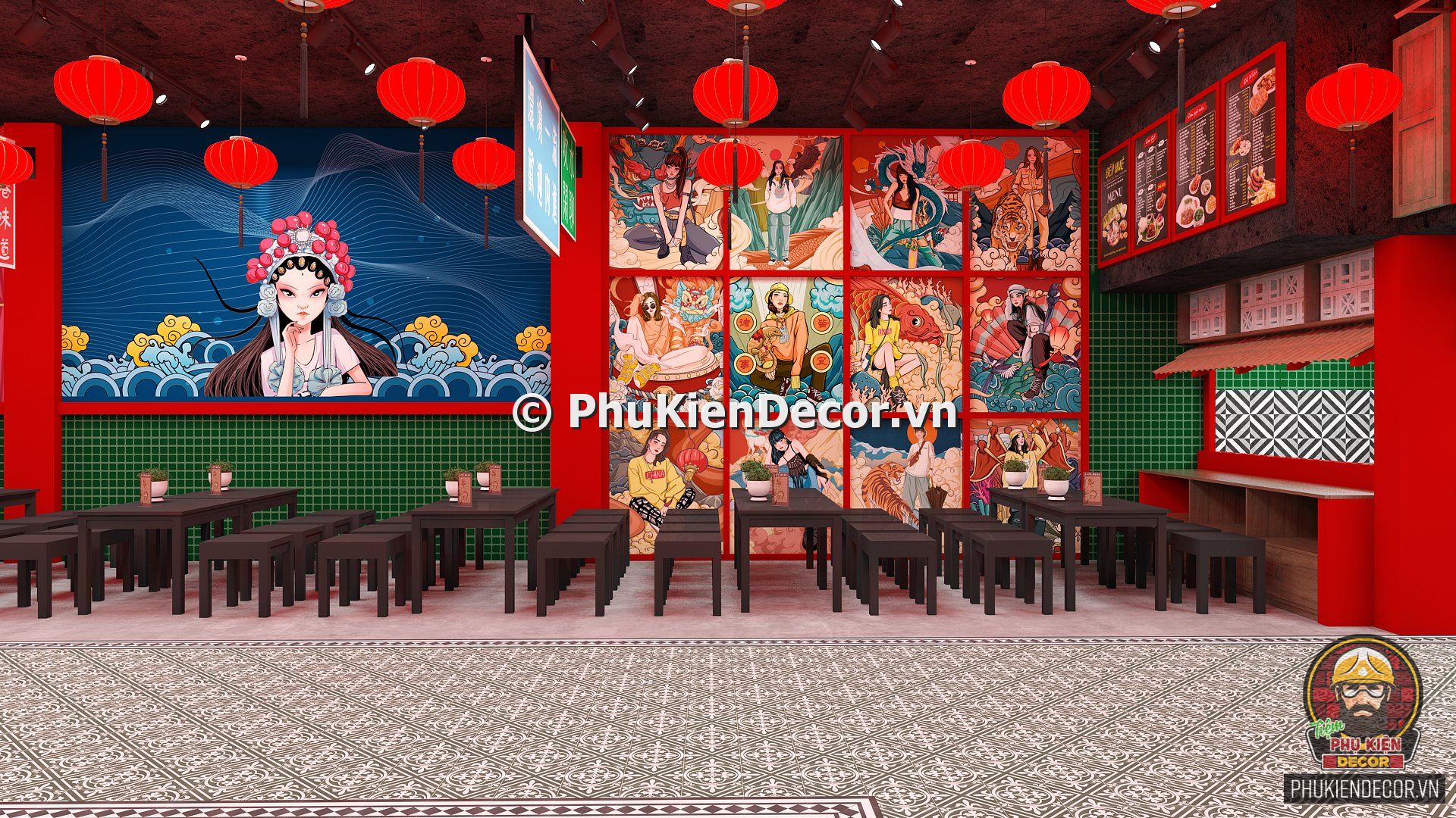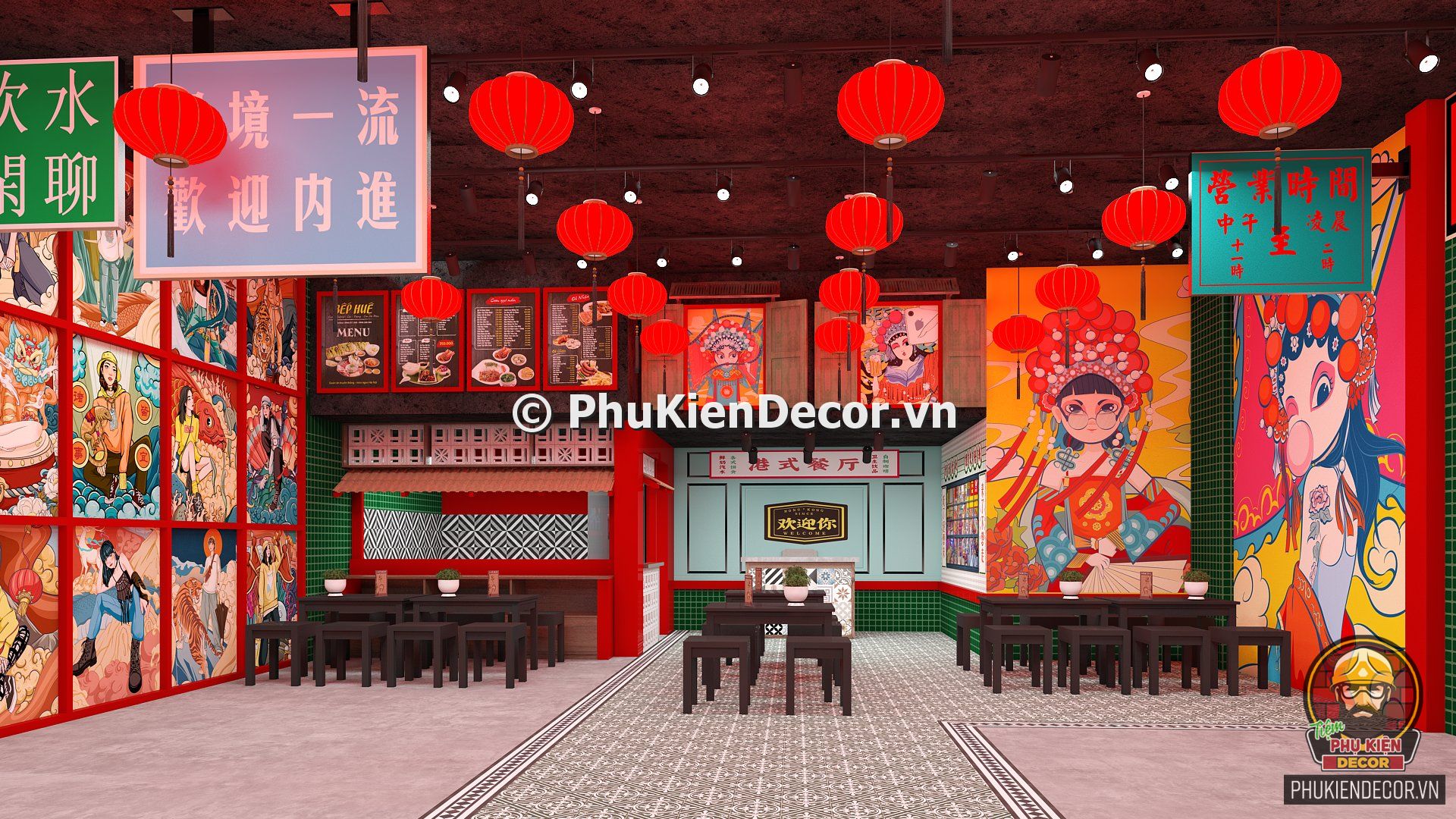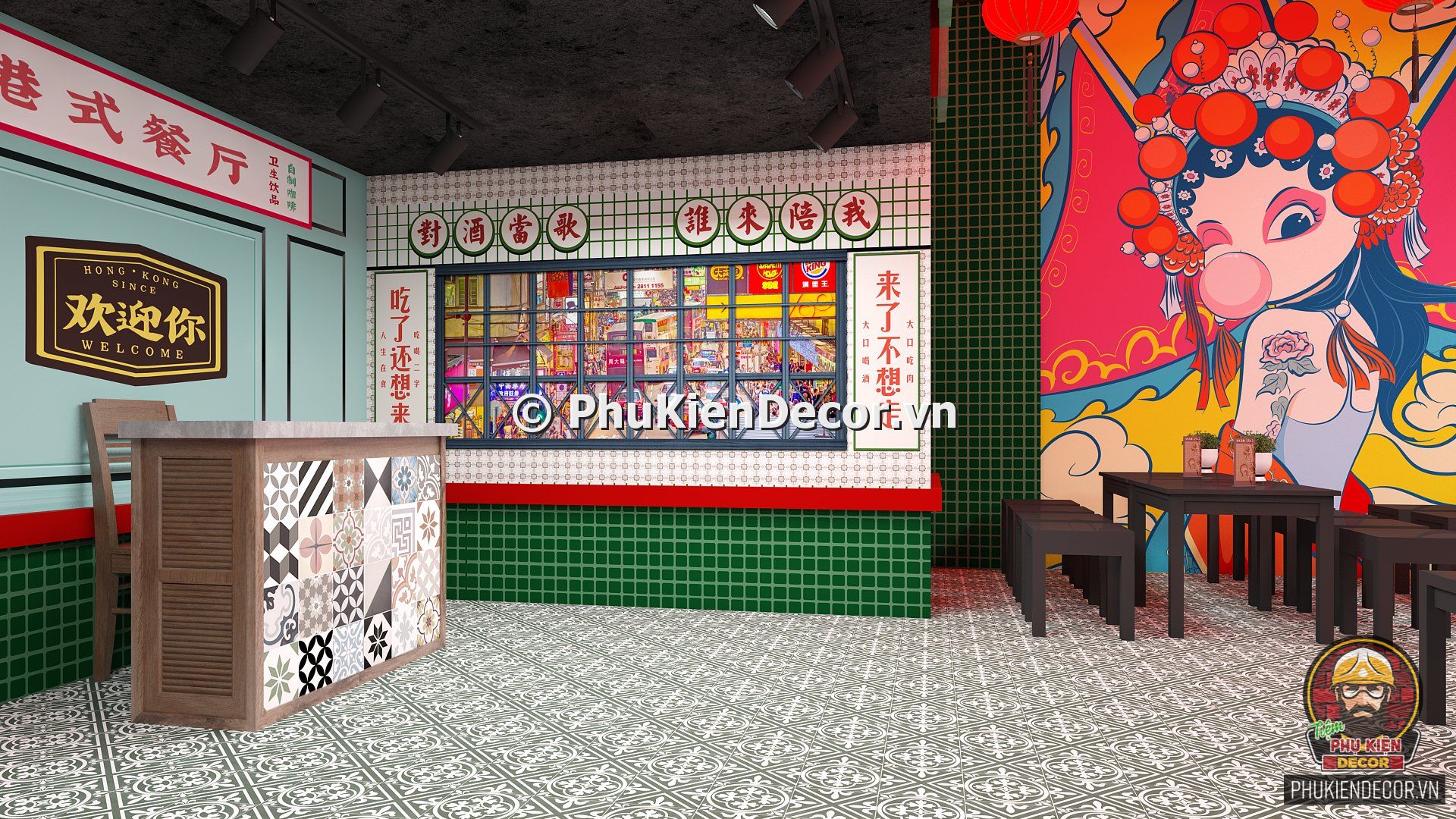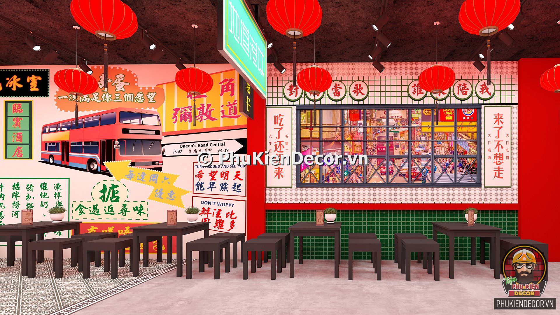 2. Phukiendecor gợi ý bạn đọc mô hình trang trí quán ăn phong cách Hồng Kông chuẩn đẹp, nổi bật, đáp ứng nhu cầu thưởng thức và check in chụp ảnh của thực khách