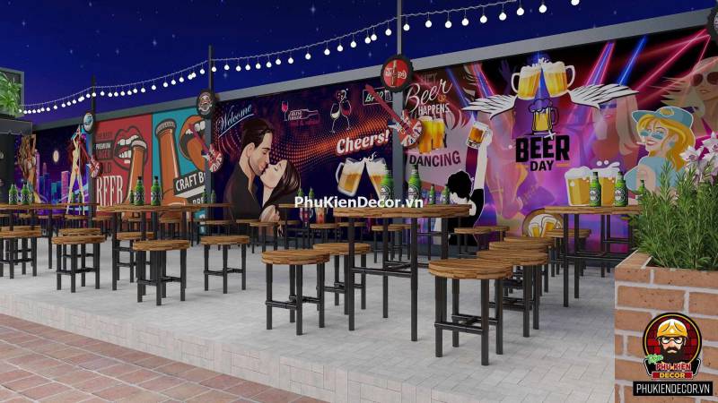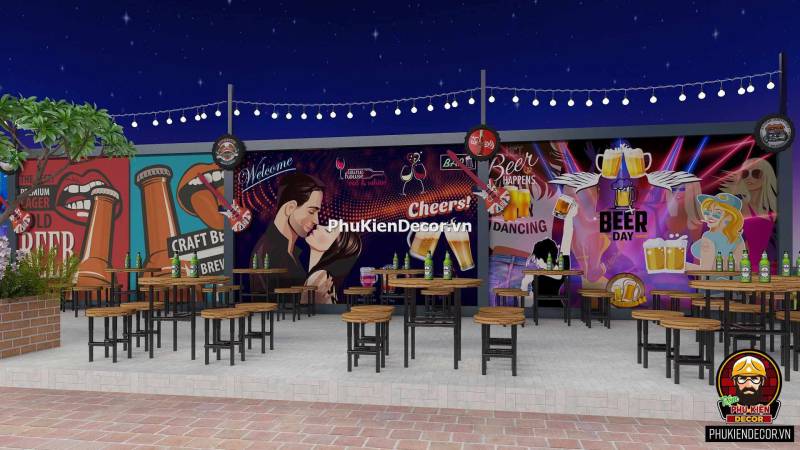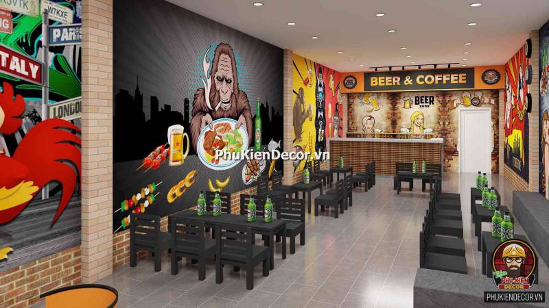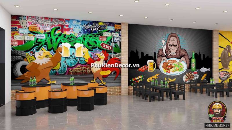 Đây là một thể loại tranh trang trí, dành cho các Không gian nội thất. Mang lại sự ấn tượng, độc đáo và phá cách. Tranh dán tường 3D trang trí cho Quán Beer Rượu, Quán Nhậu với những hình ảnh, thông điệp đầy màu sắc. Tạo nên một background độc đáo. Rất thích hợp là điểm chụp hình, checkin cho Khách hàng.