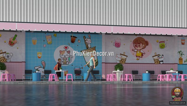 Đây là một thể loại tranh trang trí, dành cho các Không gian nội thất. Mang lại sự ấn tượng, độc đáo và phá cách. Tranh dán tường 3D trang trí cho Quán Trà Chanh, Trà Sữa với những hình ảnh, thông điệp đầy màu sắc. Tạo nên một background độc đáo. Rất thích hợp là điểm chụp hình, checkin cho Khách hàng.