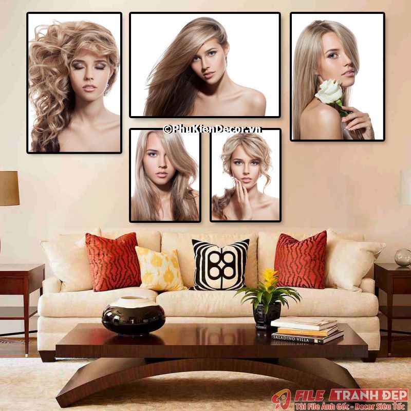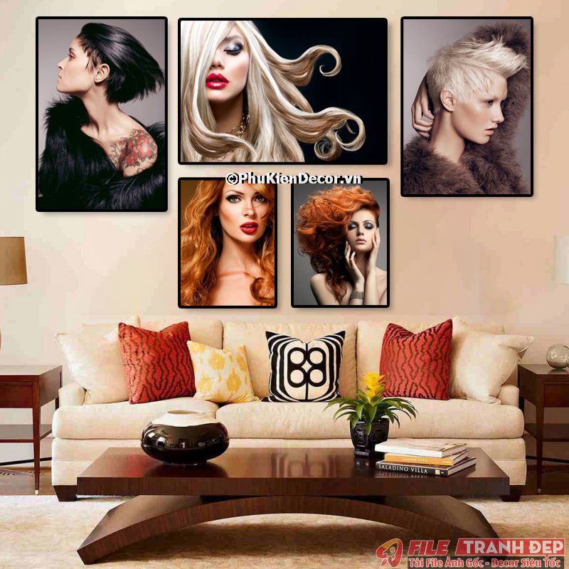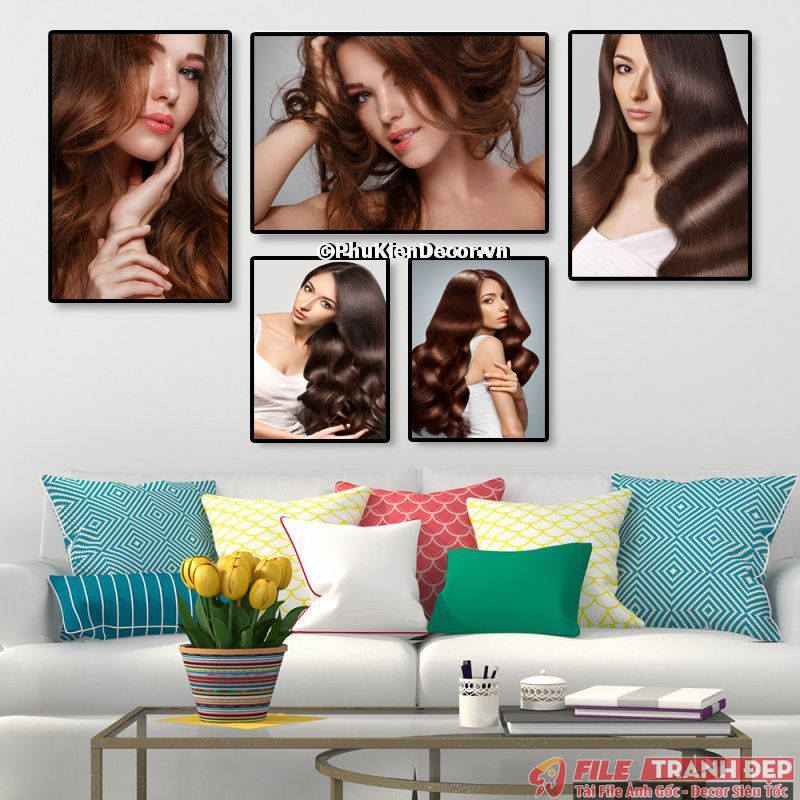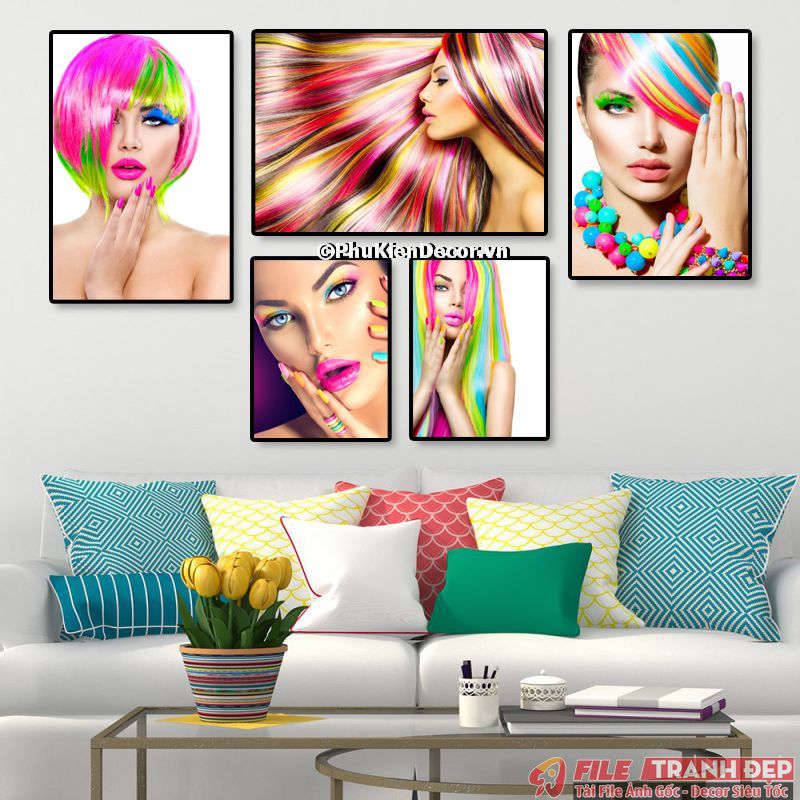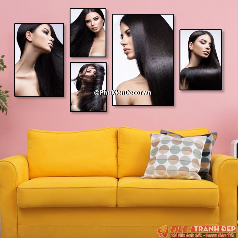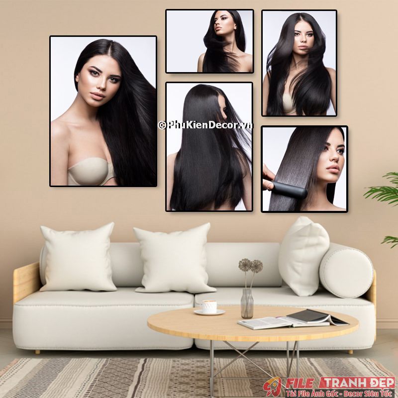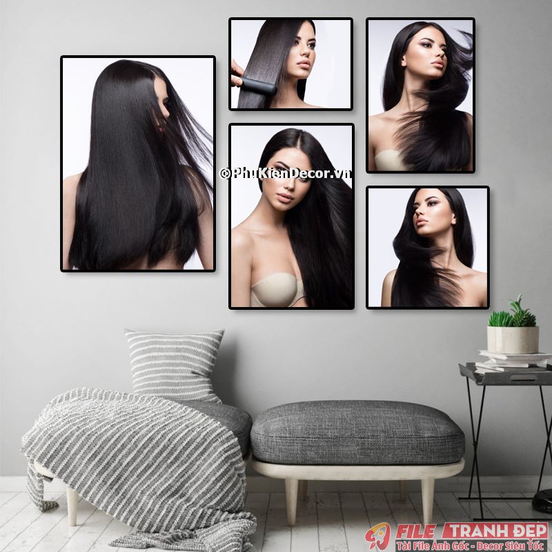 3. Tranh canvas treo tường trang trí tiệm salon tóc nữ bộ 5 bức tạo không gian chuyên nghiệp