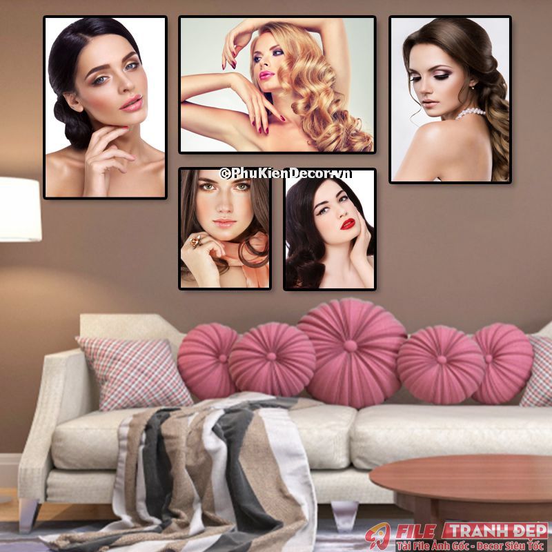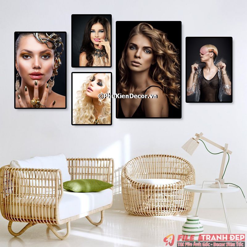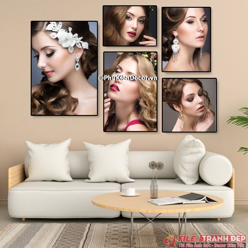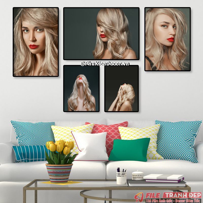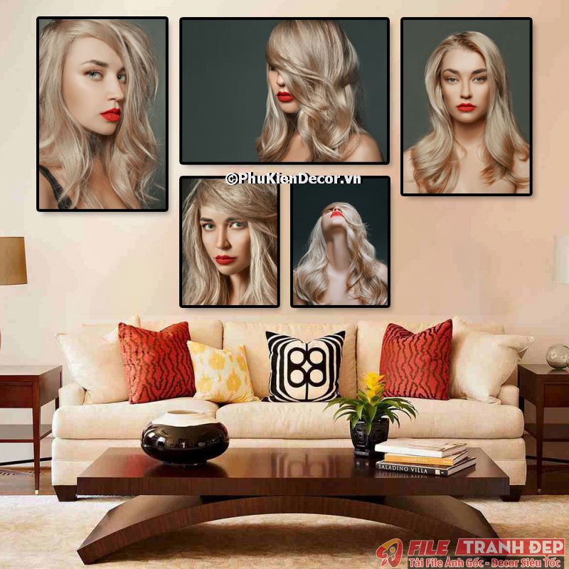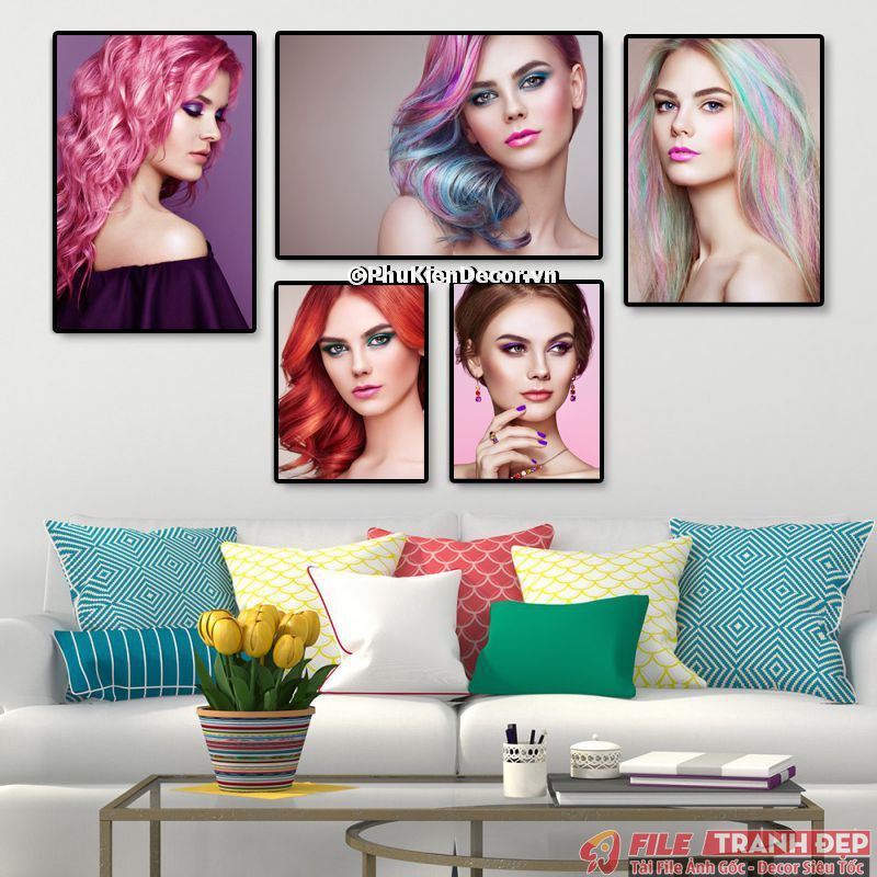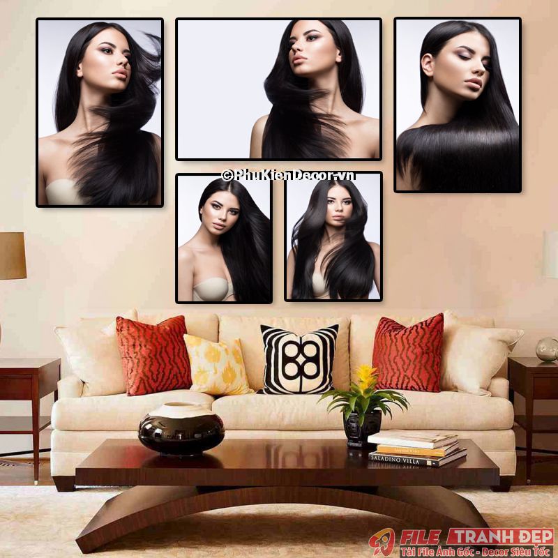 3. Tranh canvas treo tường trang trí tiệm salon tóc nữ bộ 5 bức tạo không gian chuyên nghiệp