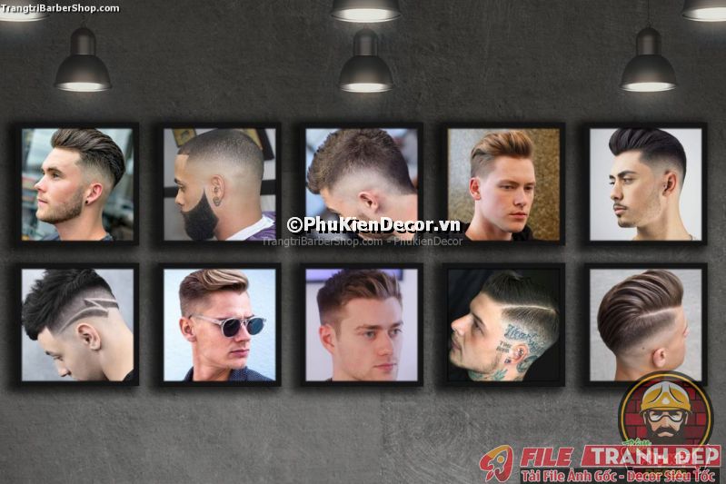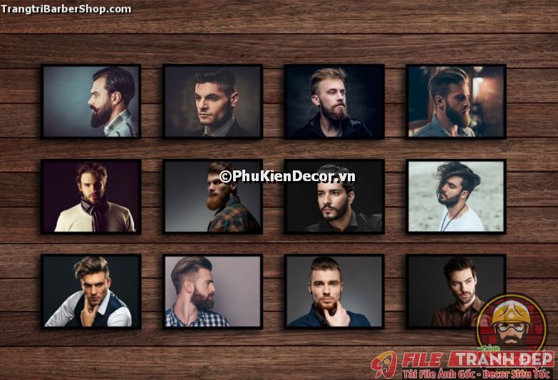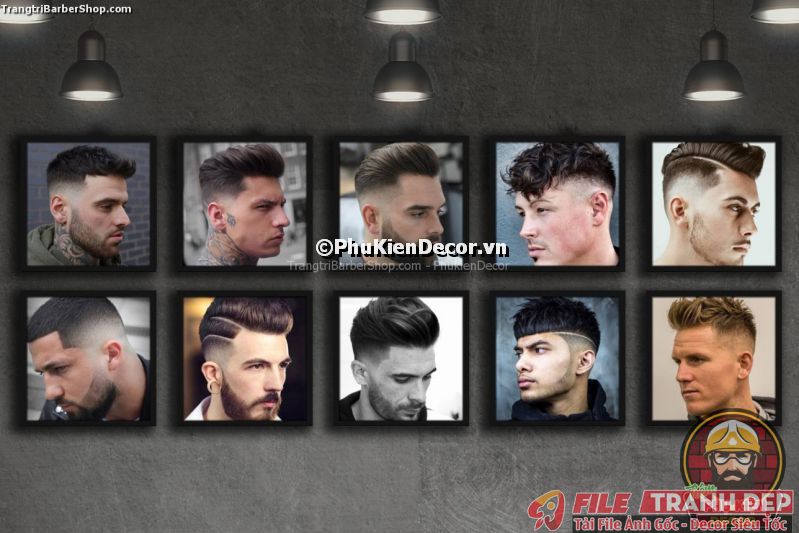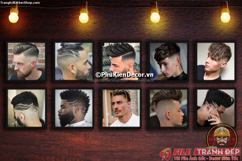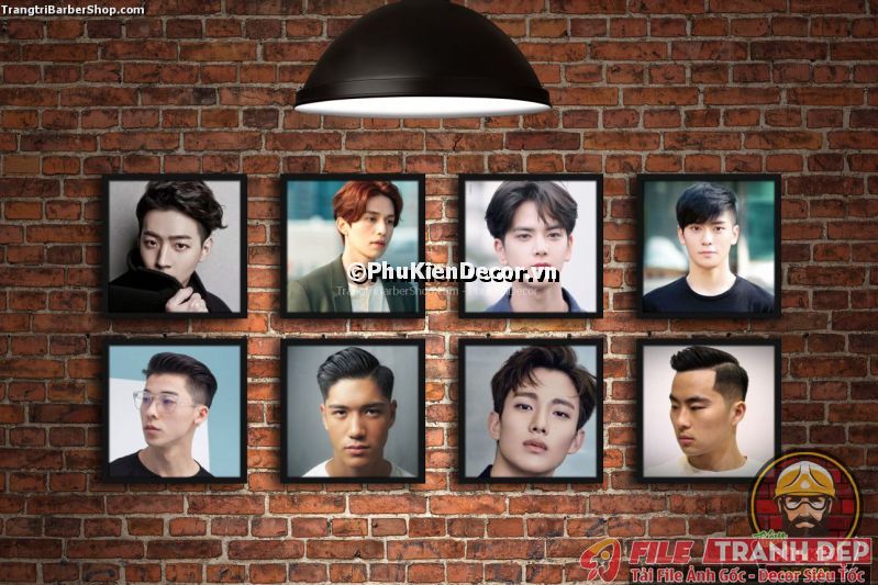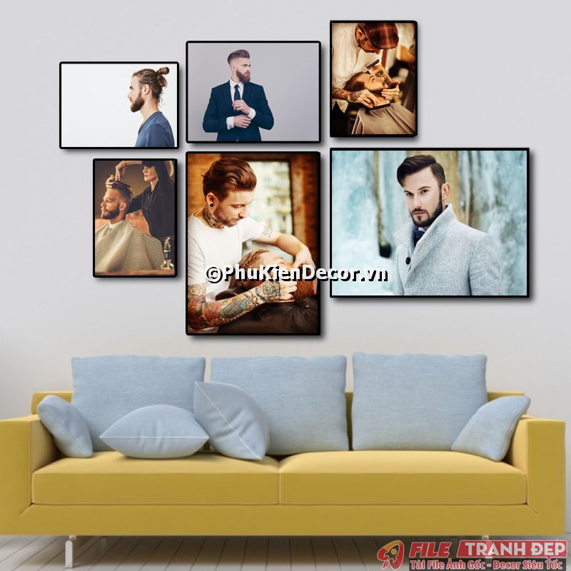 3. Tranh canvas treo tường trang trí tiệm tóc bộ 6 bức nhiều mẫu tóc bắt kịp xu hướng, thịnh hành