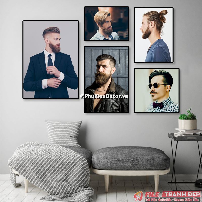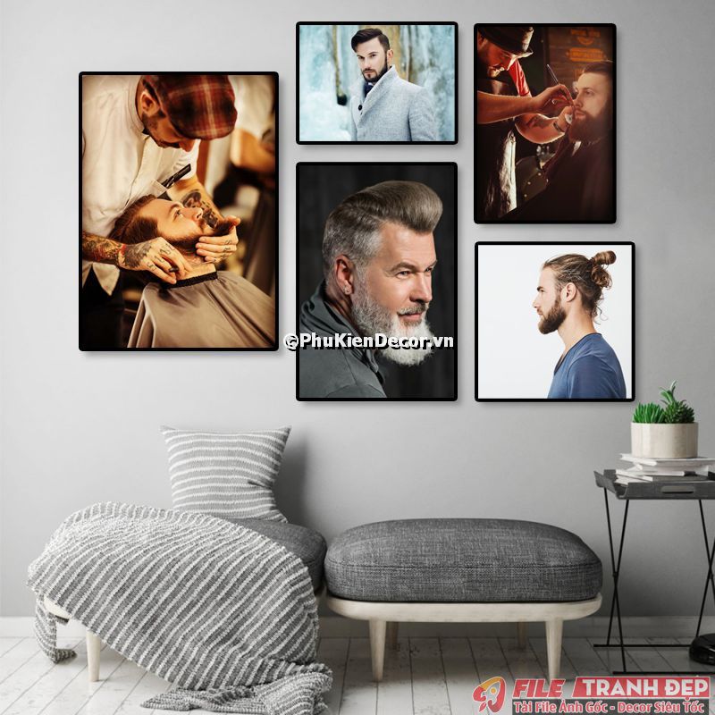 2. Tranh canvas treo tường trang trí tiệm tóc bộ 5 bức cơ bản, đơn giản