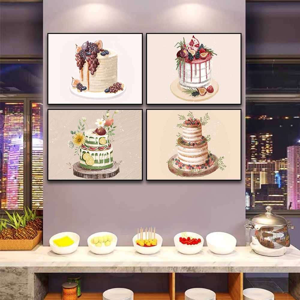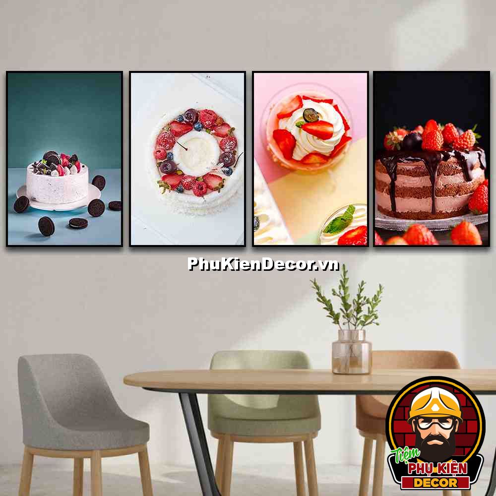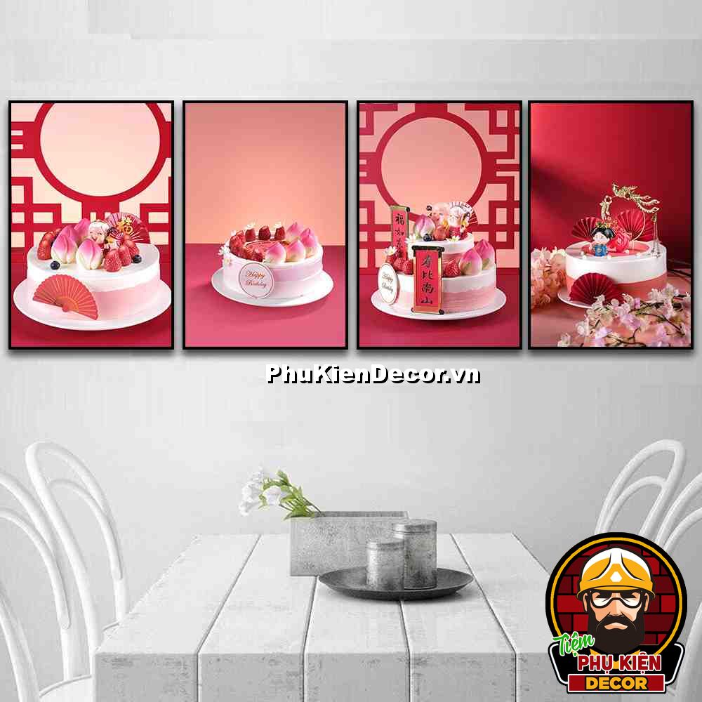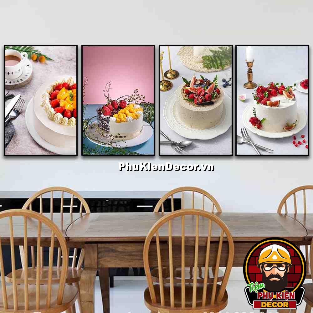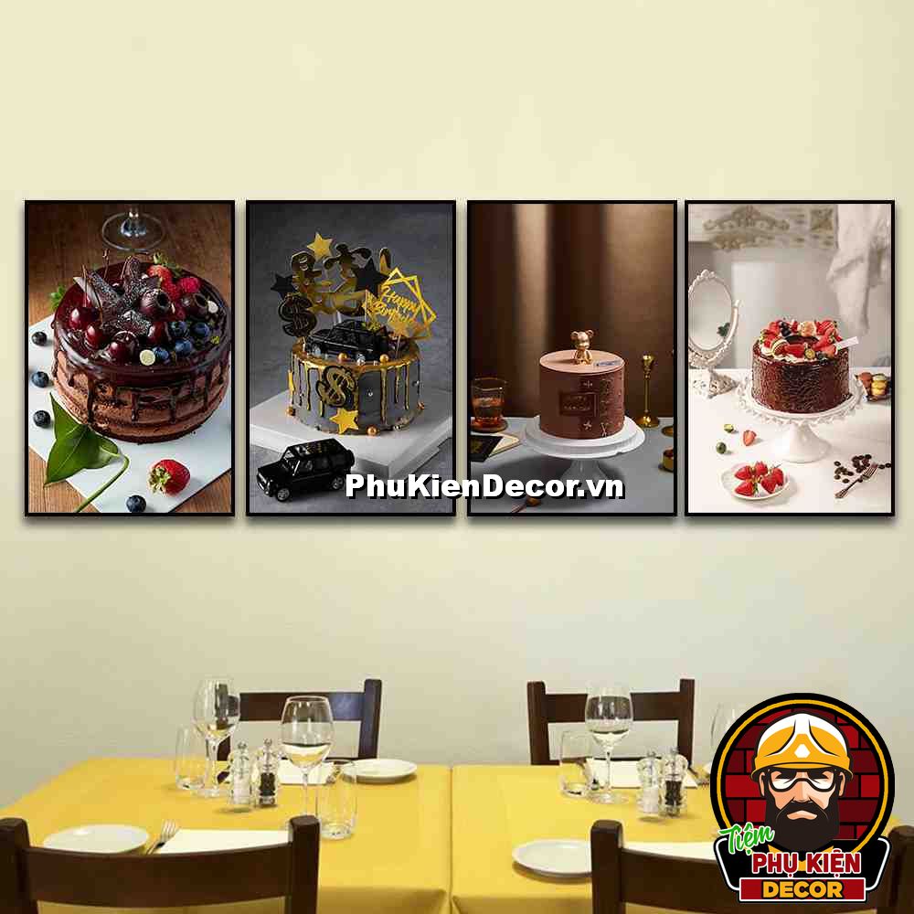 4. Tranh treo tường bộ 4 bức bánh kem trang trí tiệm bánh, giúp khách hàng tăng thêm sự tin tưởng về tay nghề làm bánh của tiệm bạn