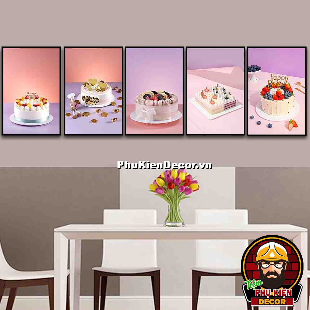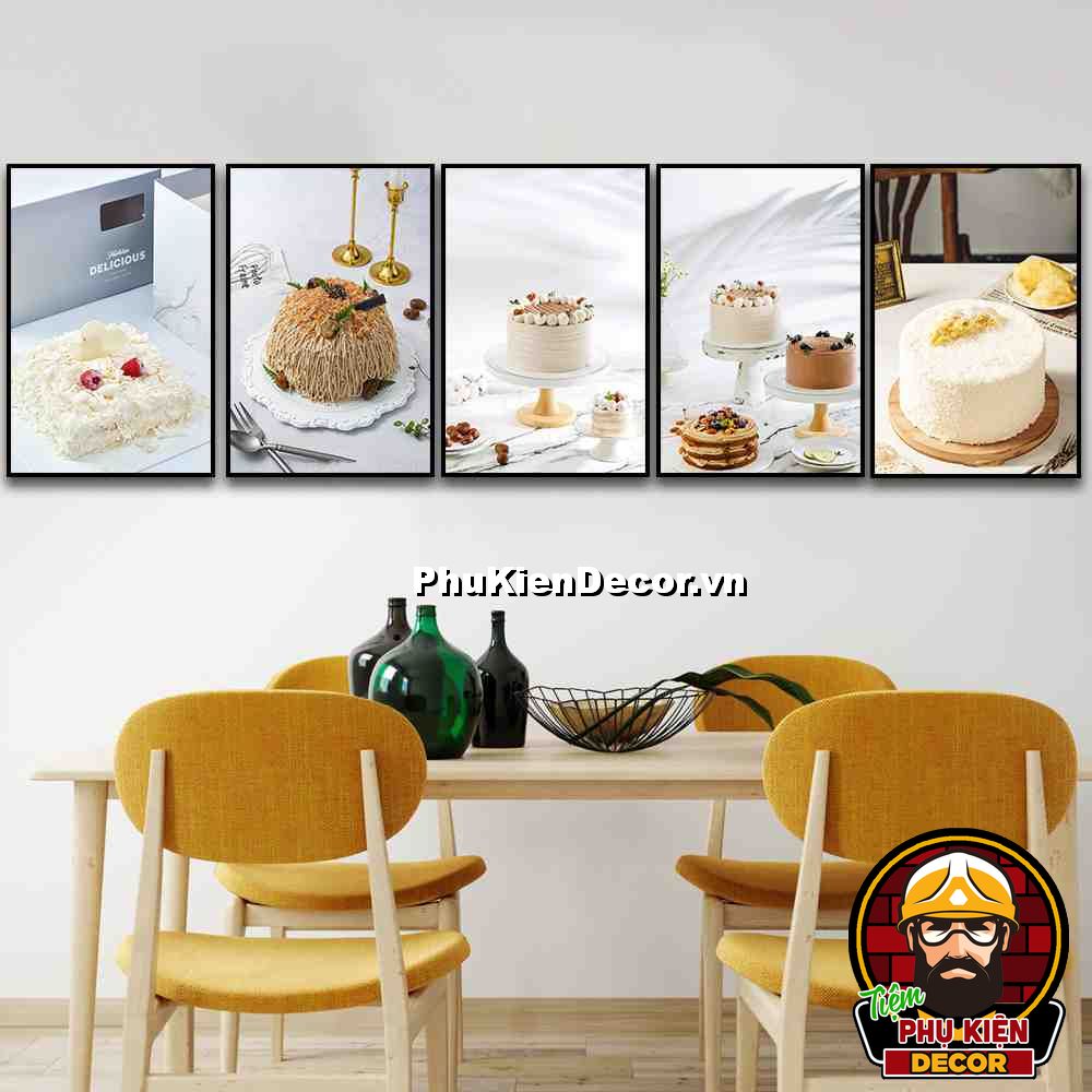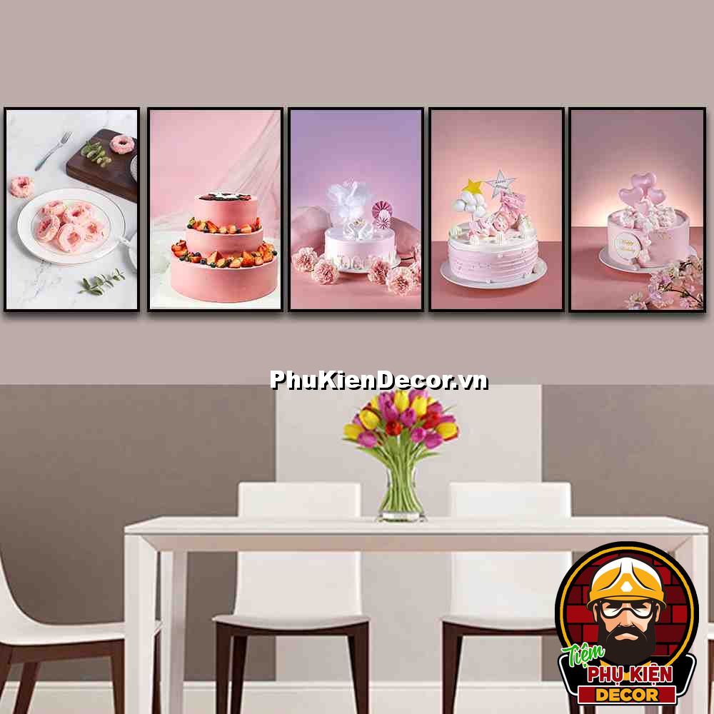 5. Tranh treo tường bộ 5 bức bánh kem trang trí tiệm bánh góp phần tăng sự hấp dẫn, đa dạng về các món bánh phục vụ thực khách