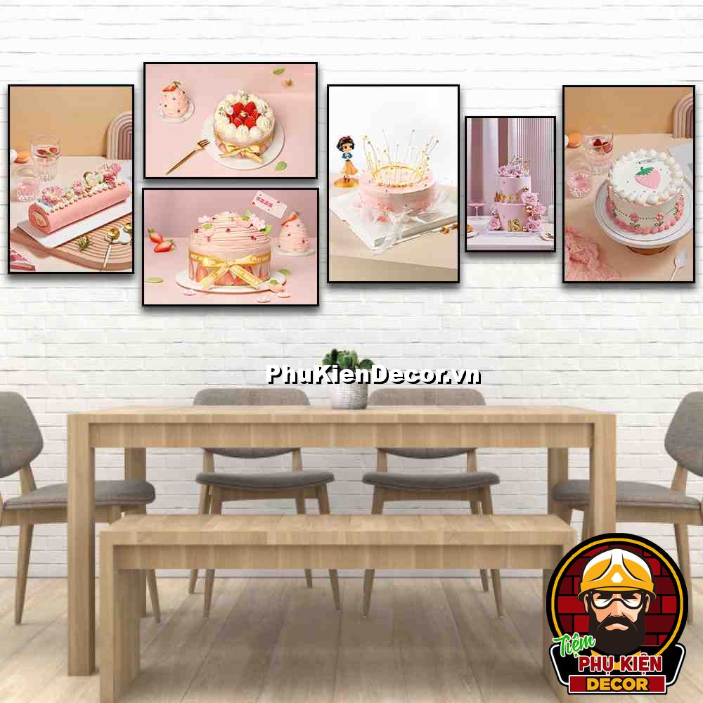6. Tranh treo tường bộ 6 bức bánh kem trang trí tiệm bánh nhiều kích thước kết hợp tạo nên sự khác biệt với các không gian tiệm bánh khác, lôi cuốn khách hàng muốn trải nghiệm các món bánh ngon (kích thước 20x30cm/ 30x40cm/ 30x50cm/ 40x60cm..)