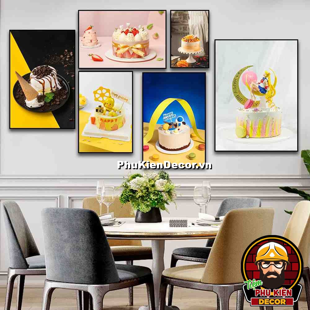 Bố trí một không gian đẹp mắt, thu hút khách hàng sẽ không còn là khó khăn đối với những bạn trẻ đang muốn khởi nghiệp kinh doanh khi các bạn xem qua bài tổng hợp tranh treo tường trang trí tiệm trà bánh - bánh kem của Phukiendecor.vn.