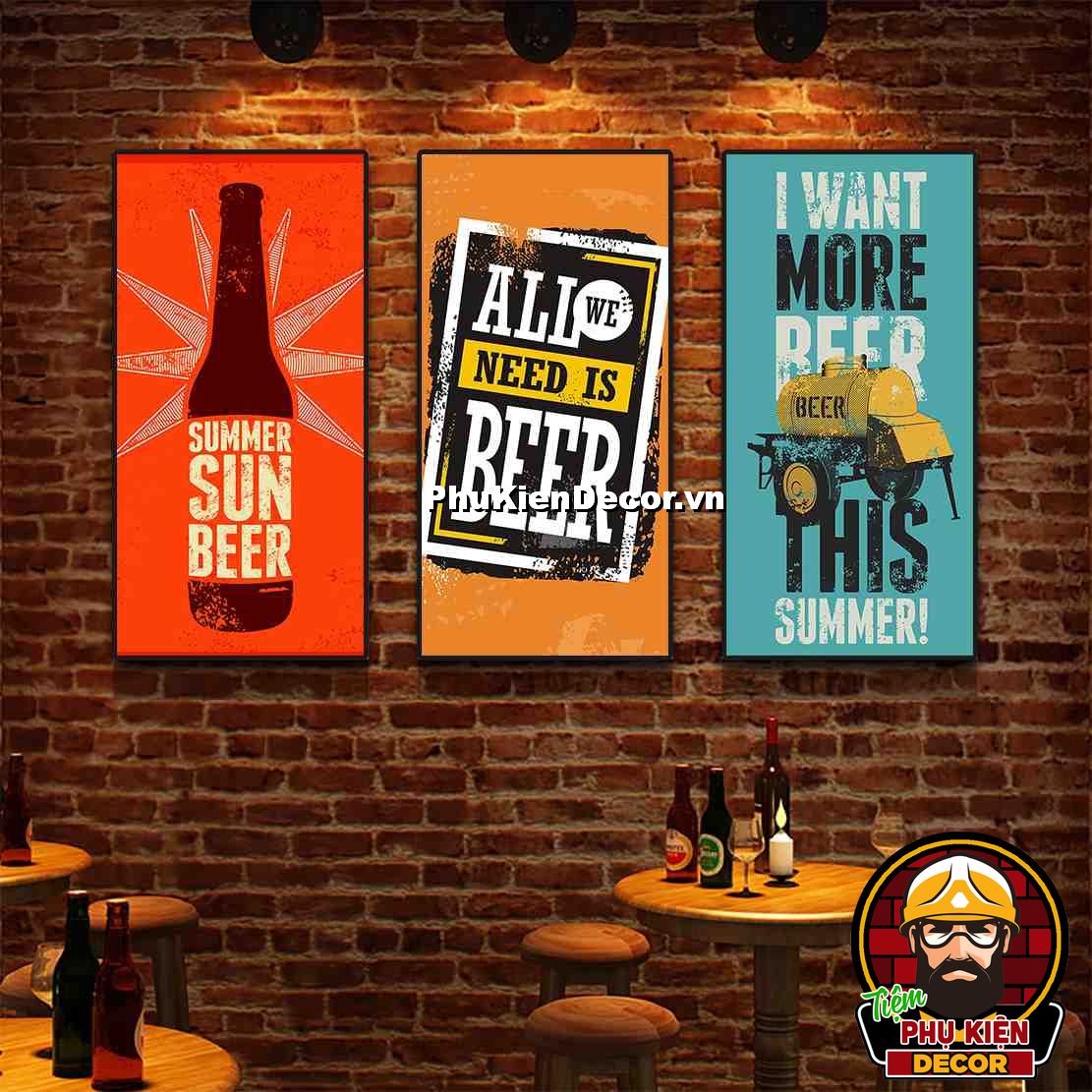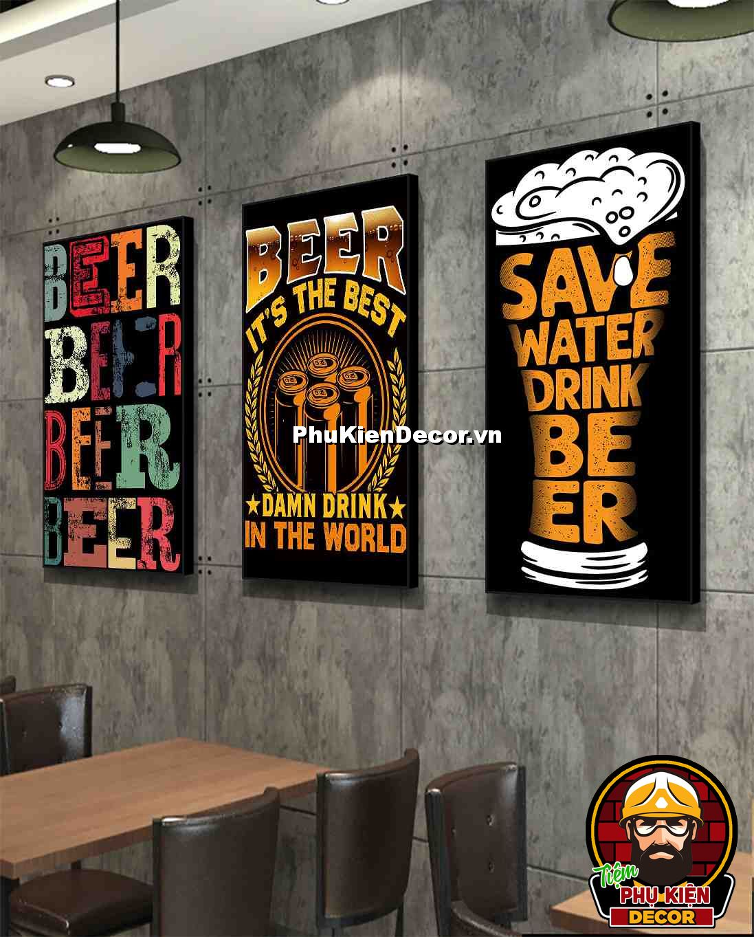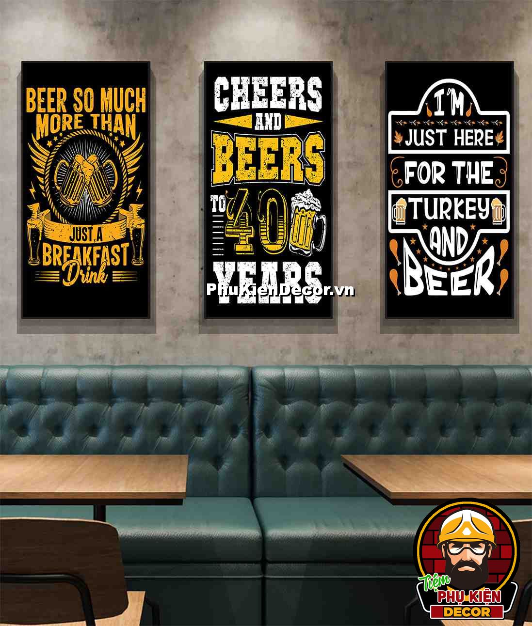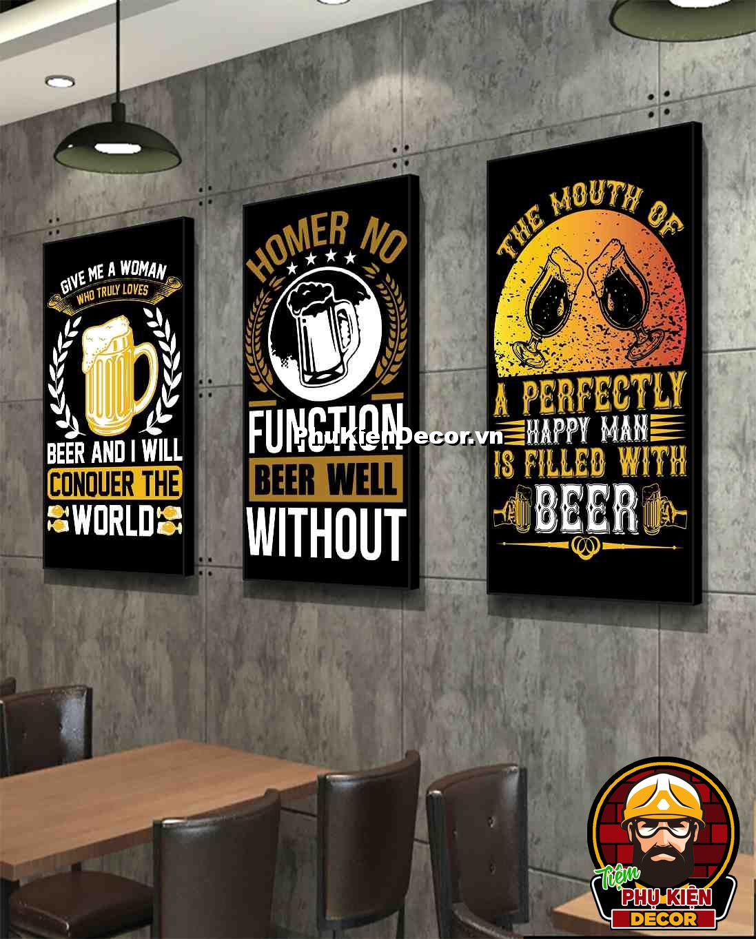 1. Tranh treo tường bộ 3 bức kích thước 40x80cm đơn giản, thiết kế đơn giản nhưng không kém phần thu hút, nổi bật cho không gian quán beer, bar - pub