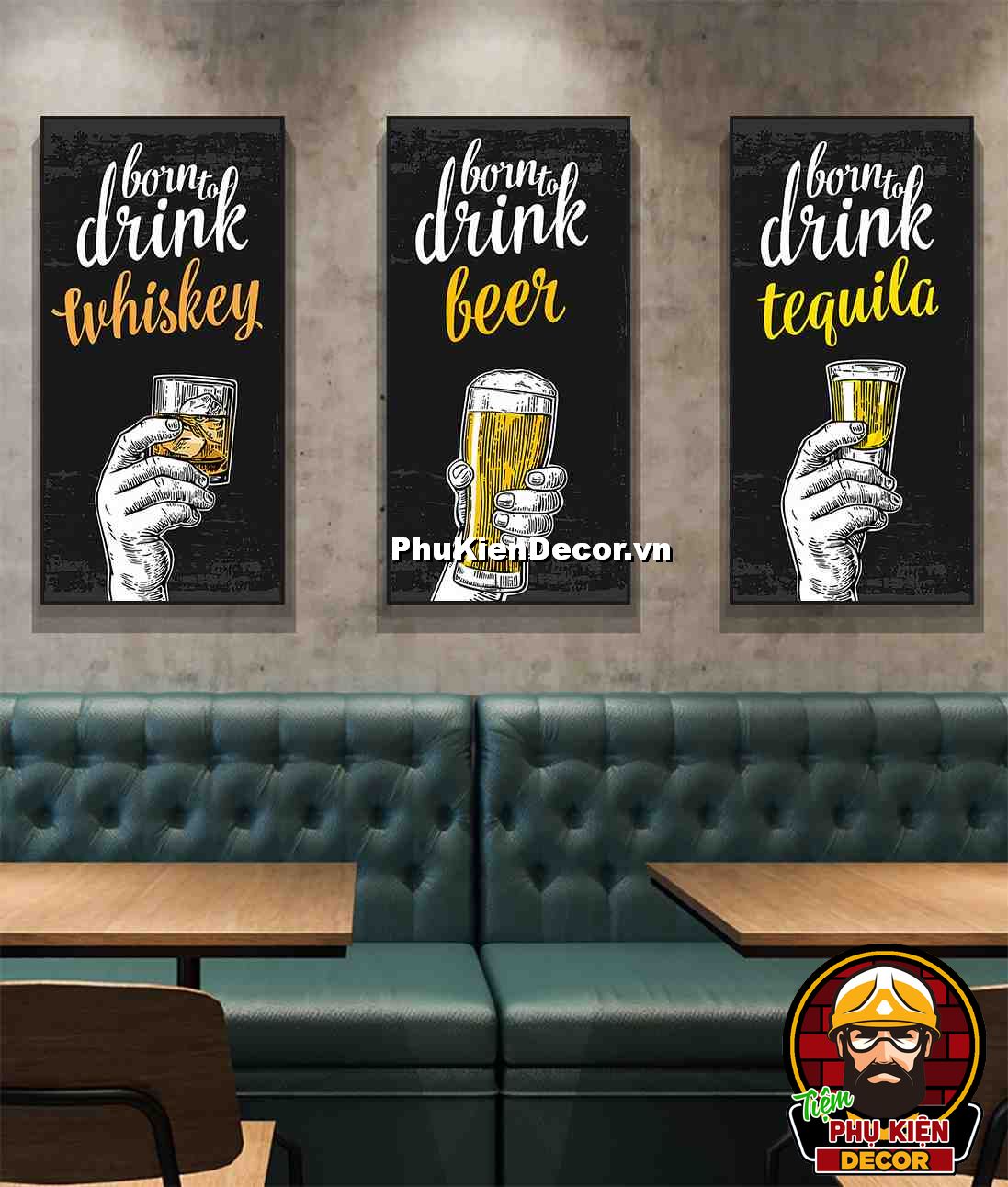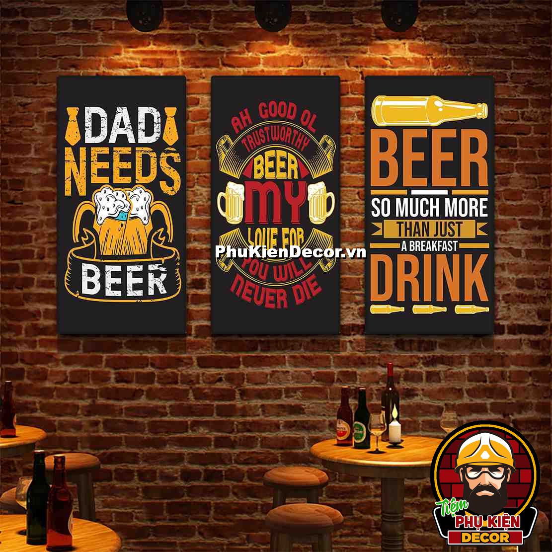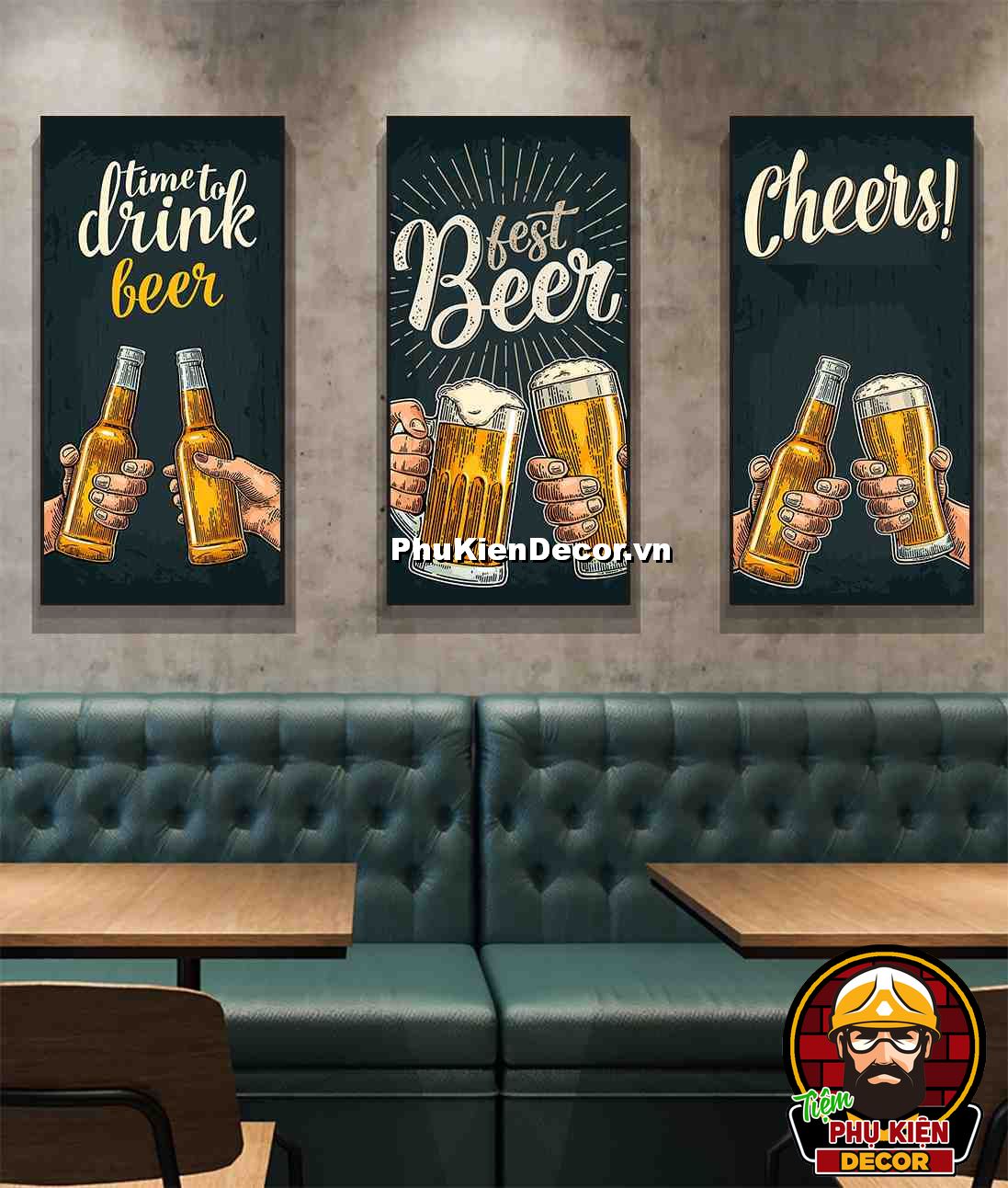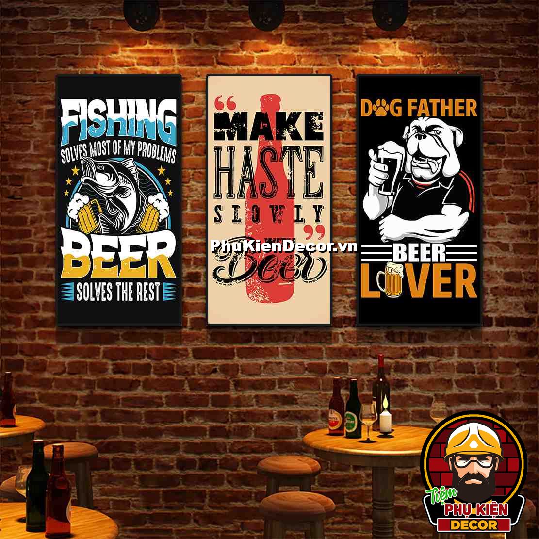 1. Tranh treo tường bộ 3 bức kích thước 40x80cm đơn giản, thiết kế đơn giản nhưng không kém phần thu hút, nổi bật cho không gian quán beer, bar - pub