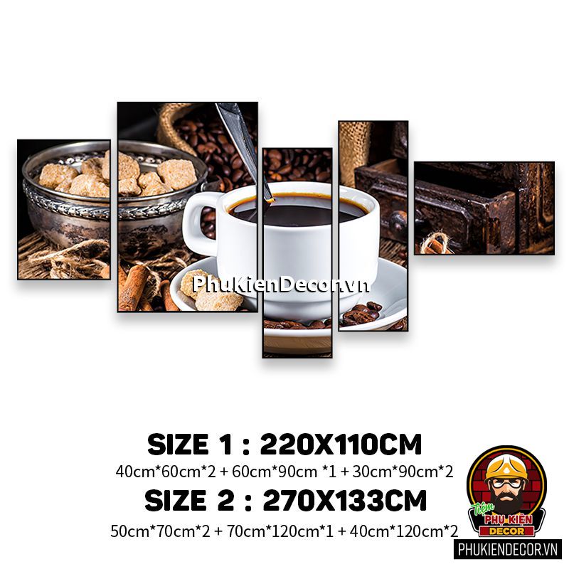 Những bức tranh canvas cà phê với các kích thước cơ bản sẽ tạo không gian thu hút, chuyên nghiệp và giúp khách hàng hình dung rõ những món cà phê thơm ngon thuộc menu quán pha chế và kích thích nhu cầu thưởng thức cà phê ngon.