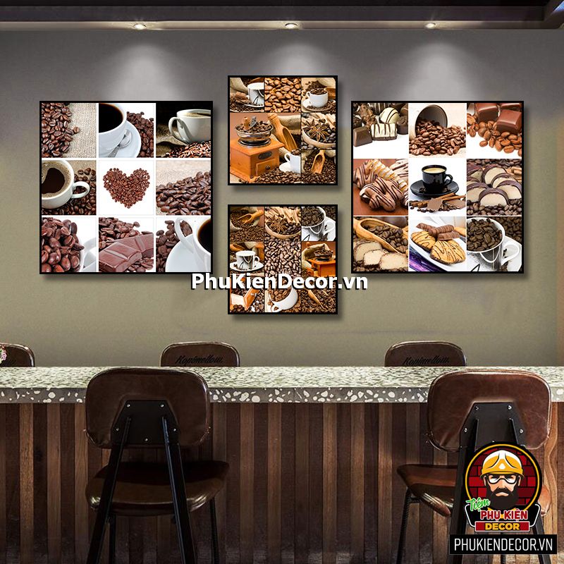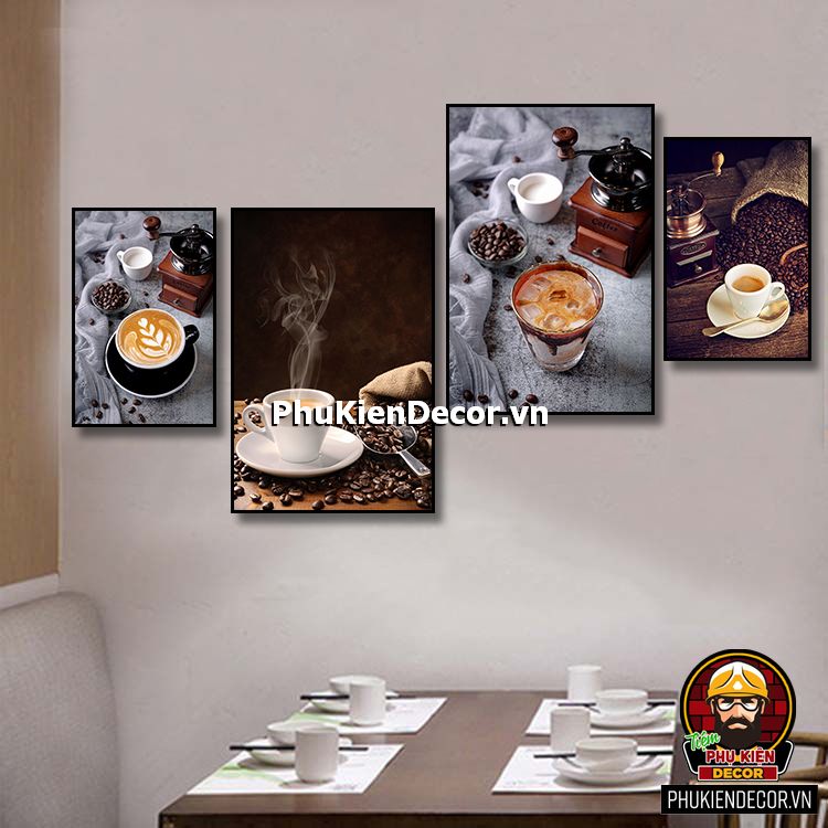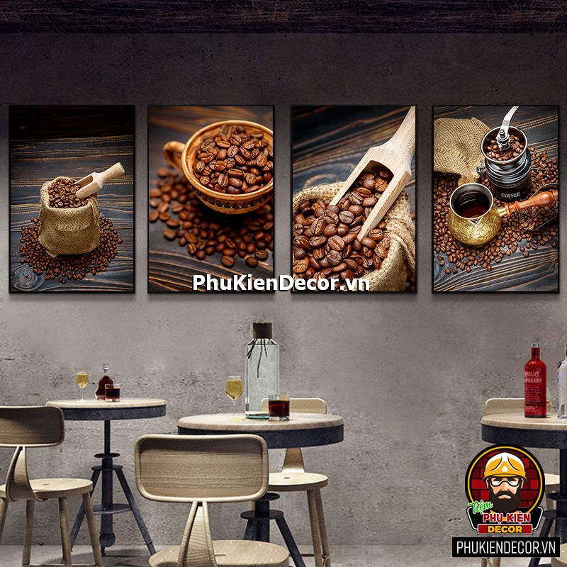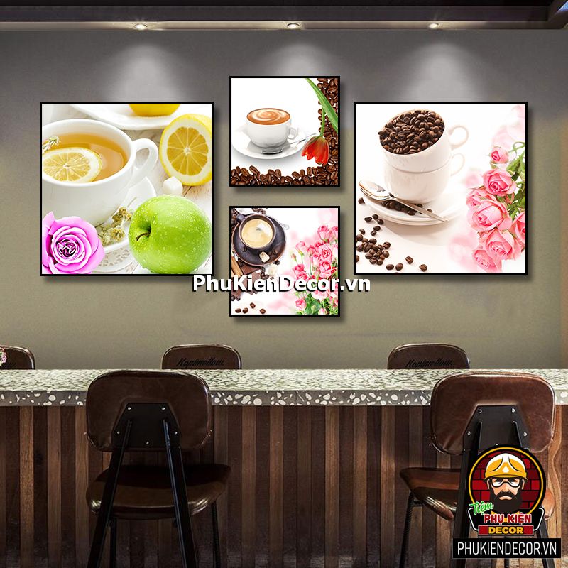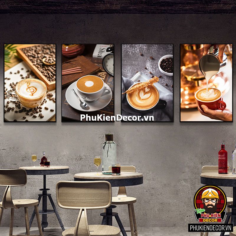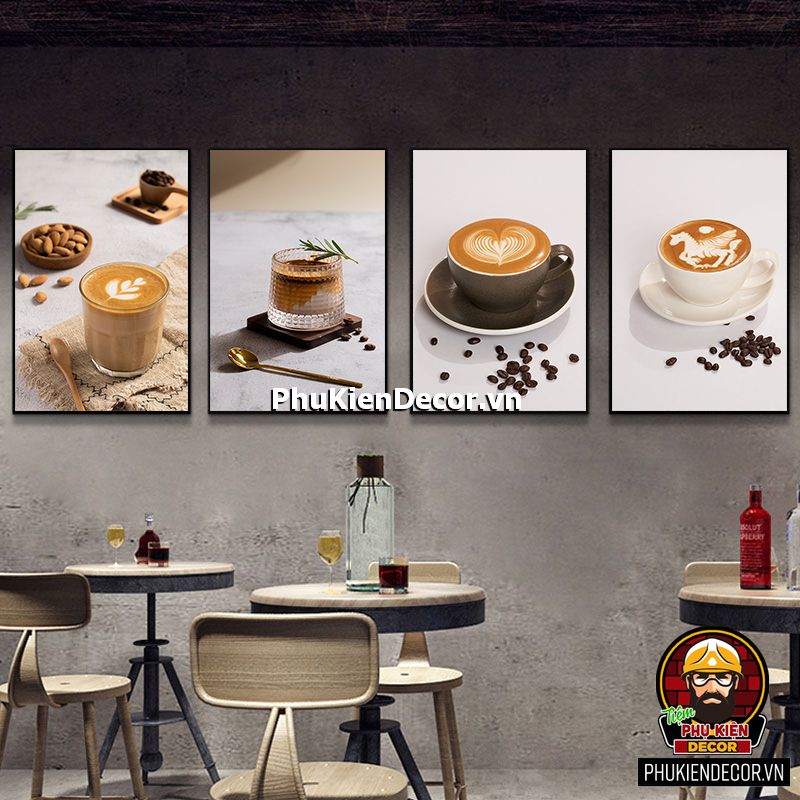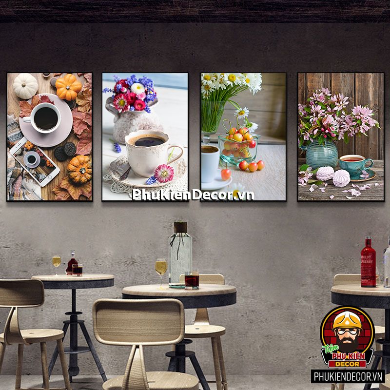Trang trang trí quán cafe đẹp có đa dạng mẫu mã, kích thước còn phù hợp với mọi không gian từ lớn đến hẹp, từ những bức tường nhỏ cũng dễ dàng tô điểm bằng những bức tranh treo tường sinh động, chân thực.