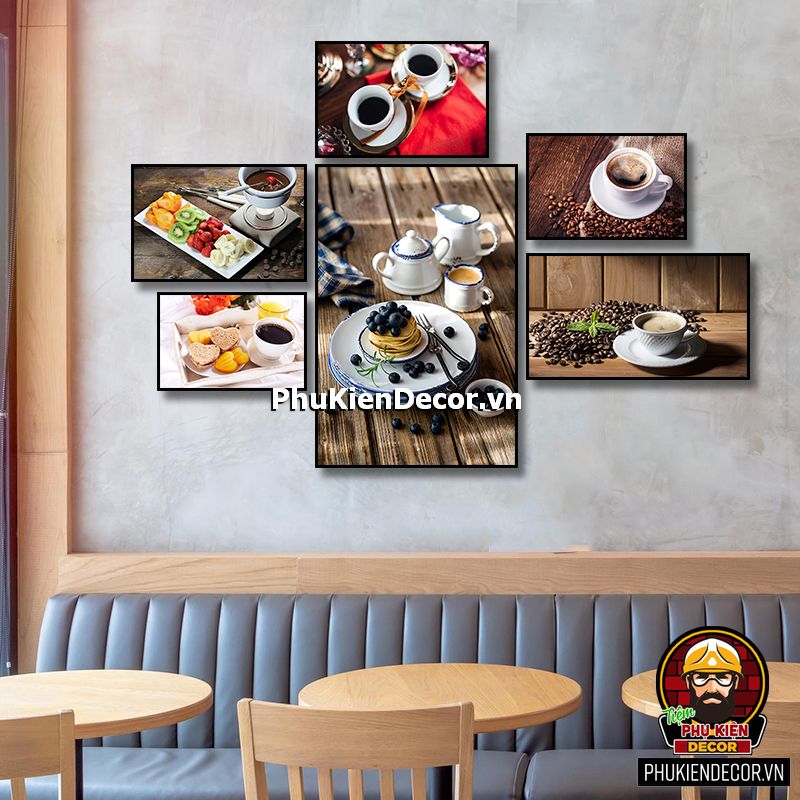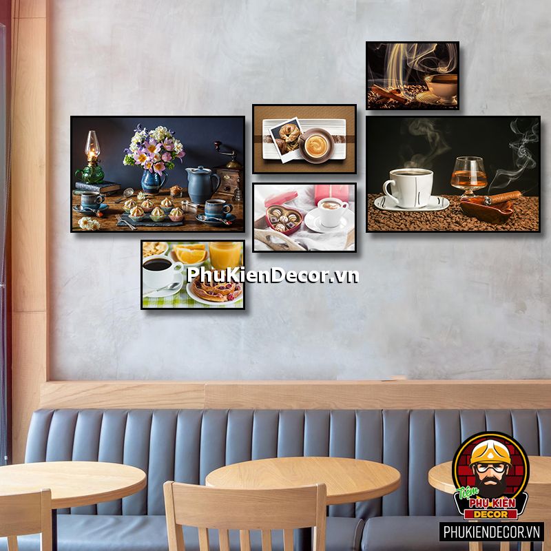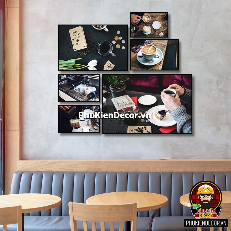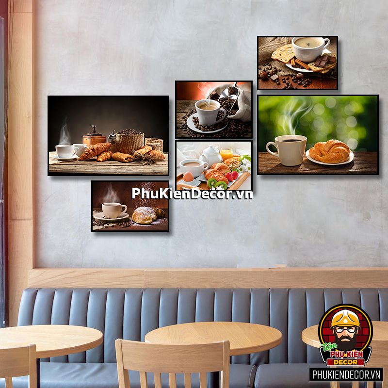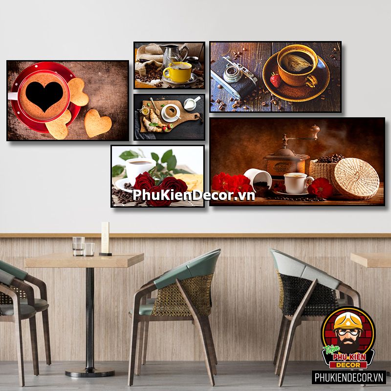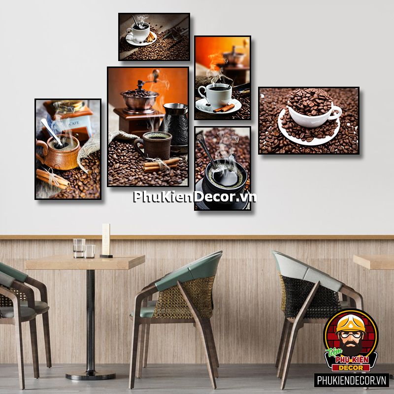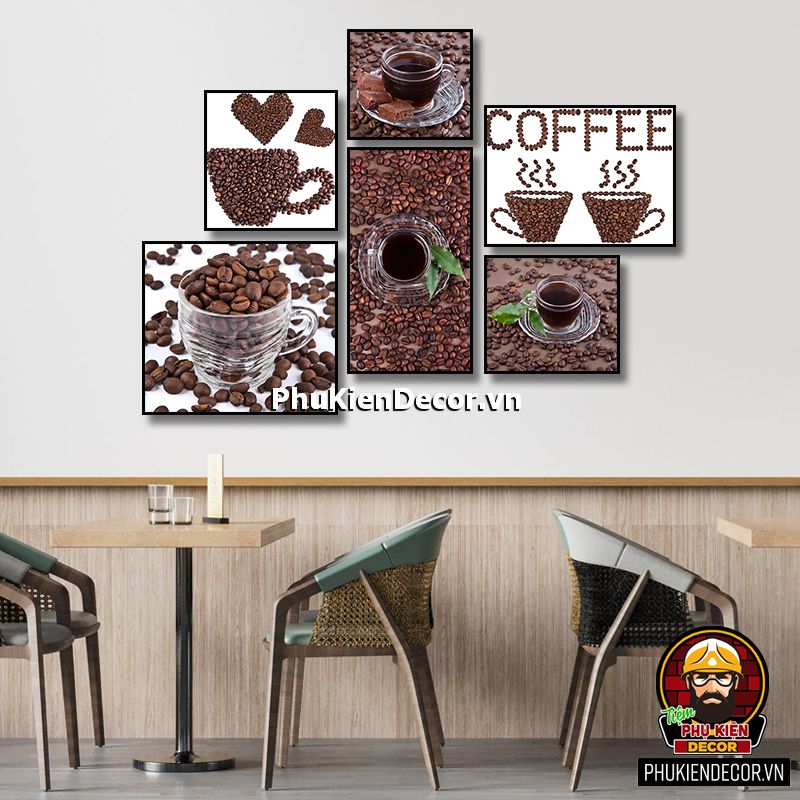 Bộ tranh cafe 6 bức đa dạng kích thước sẽ tô điểm thêm cho không gian bạn bắt mắt, phong phú, sinh động, thu hút
