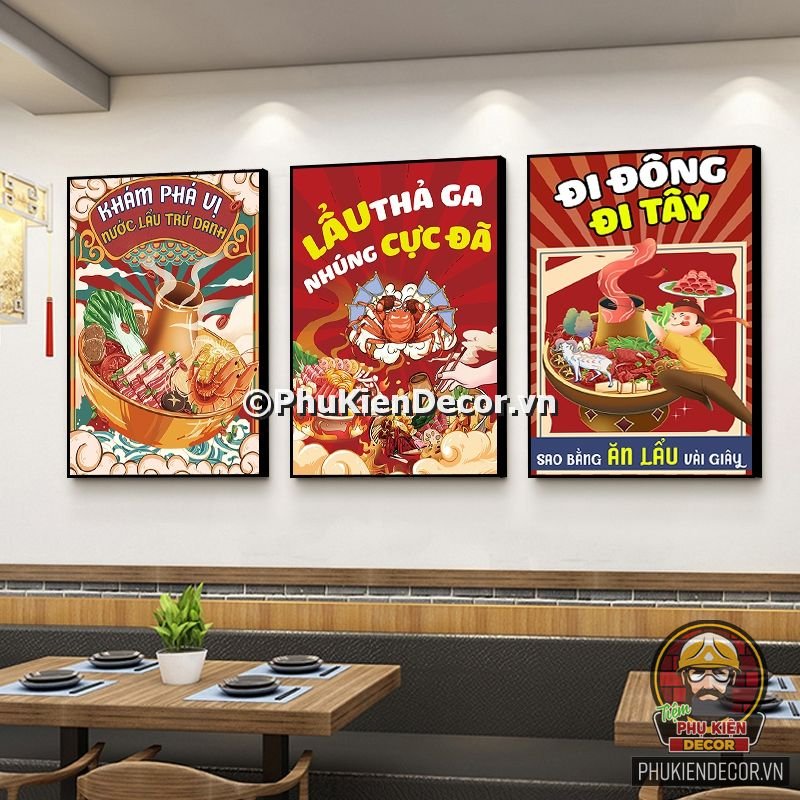 Trong bài viết này Phukiendecor.vn sẽ đem đến cho bạn những mẫu sản phẩm tranh treo tường quán Lẩu Nướng phù hợp nhất nhé!