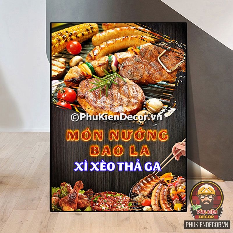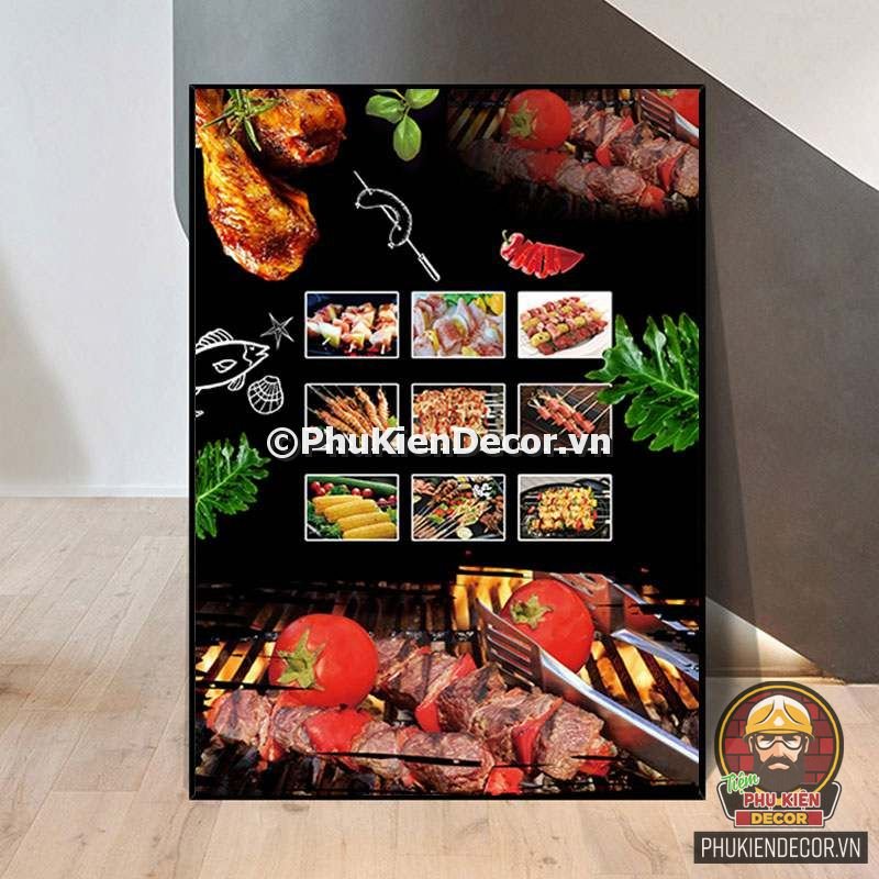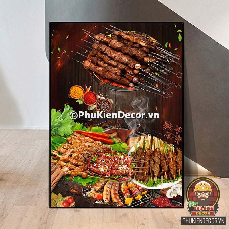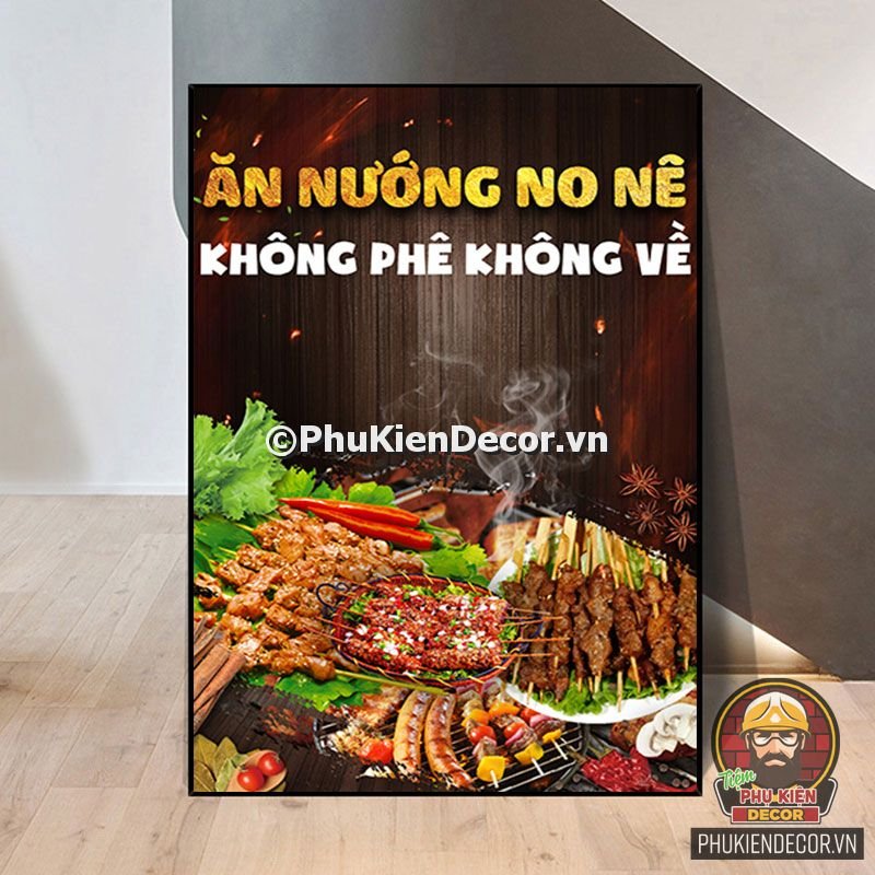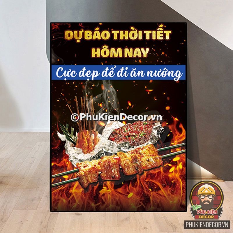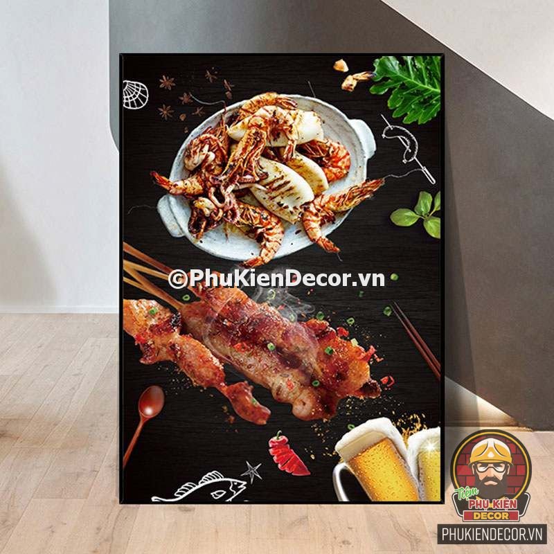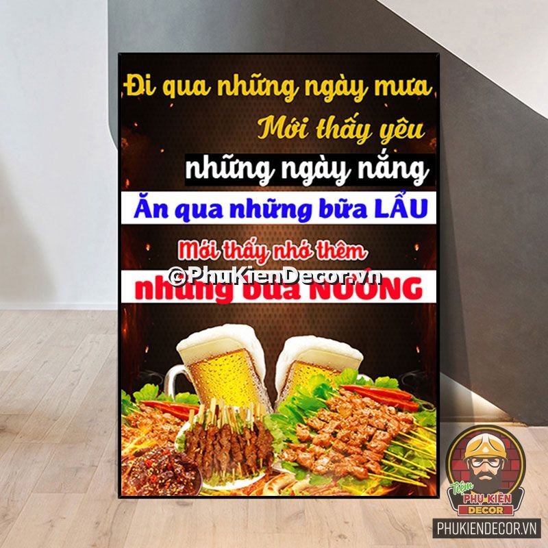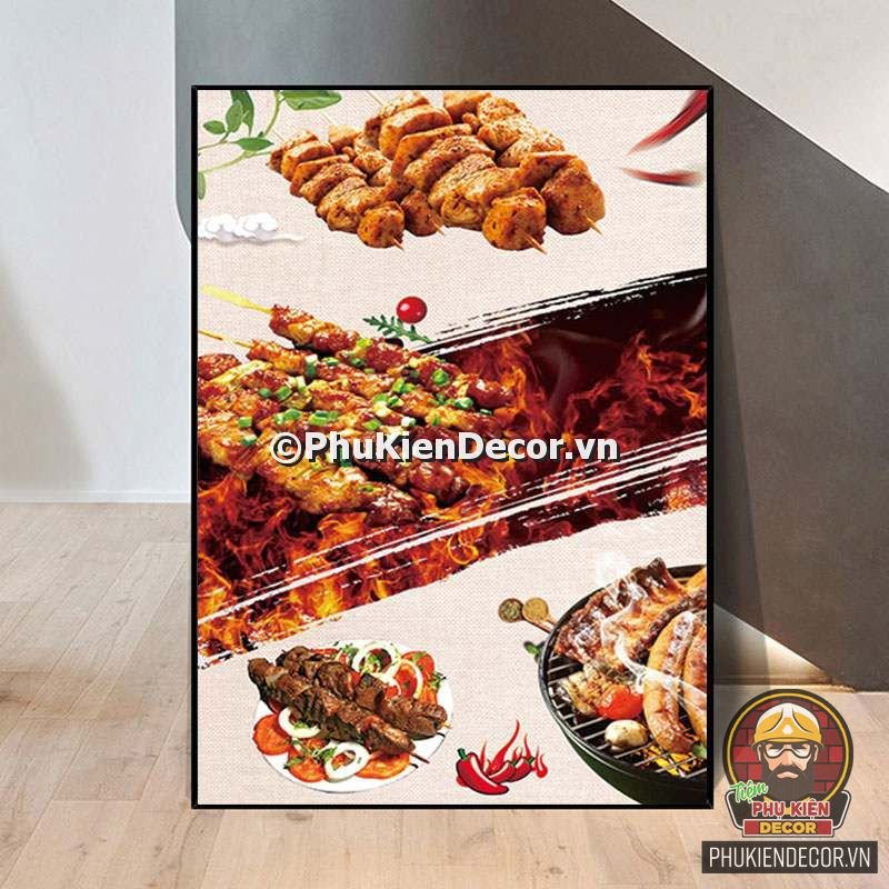 2. Tranh treo tường trang trí quán nướng với thiết kế màu sắc nổi bật, tươi tắn và hình ảnh, slogan vui nhộn, thú vị tạo nên không gian trải nghiệm món ngon và tận hưởng không khí thoải mái cho thực khách