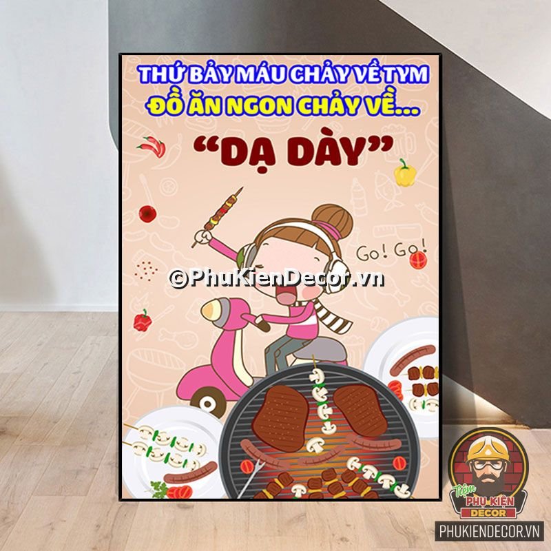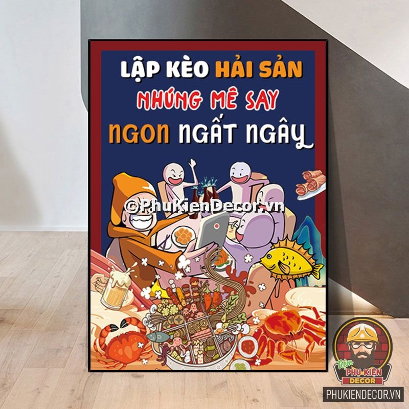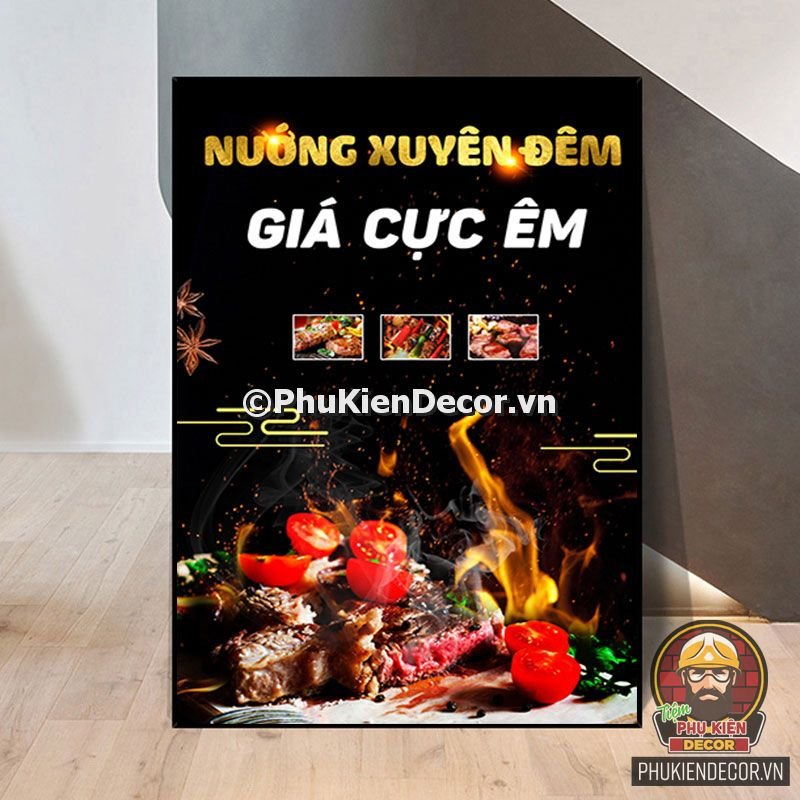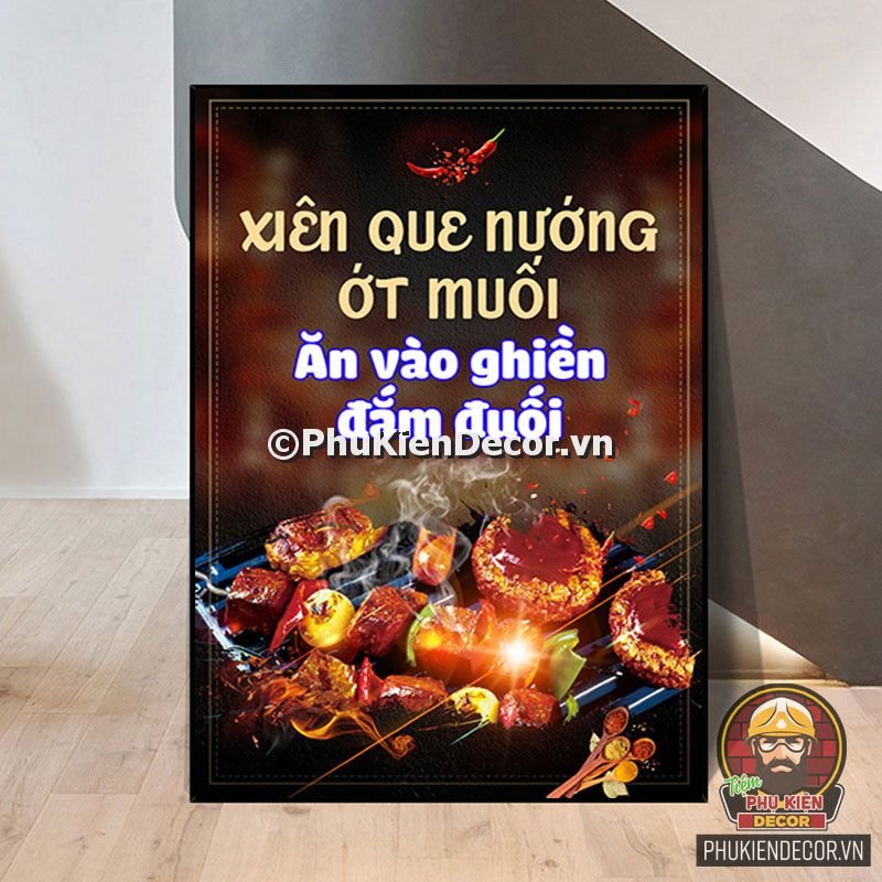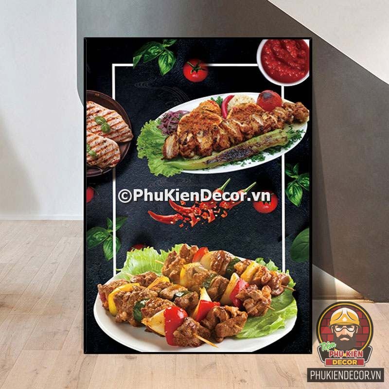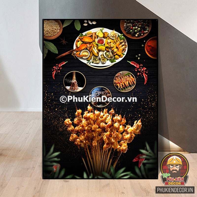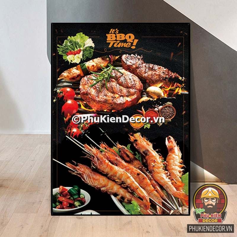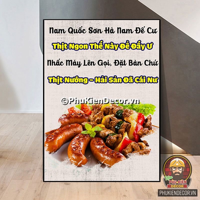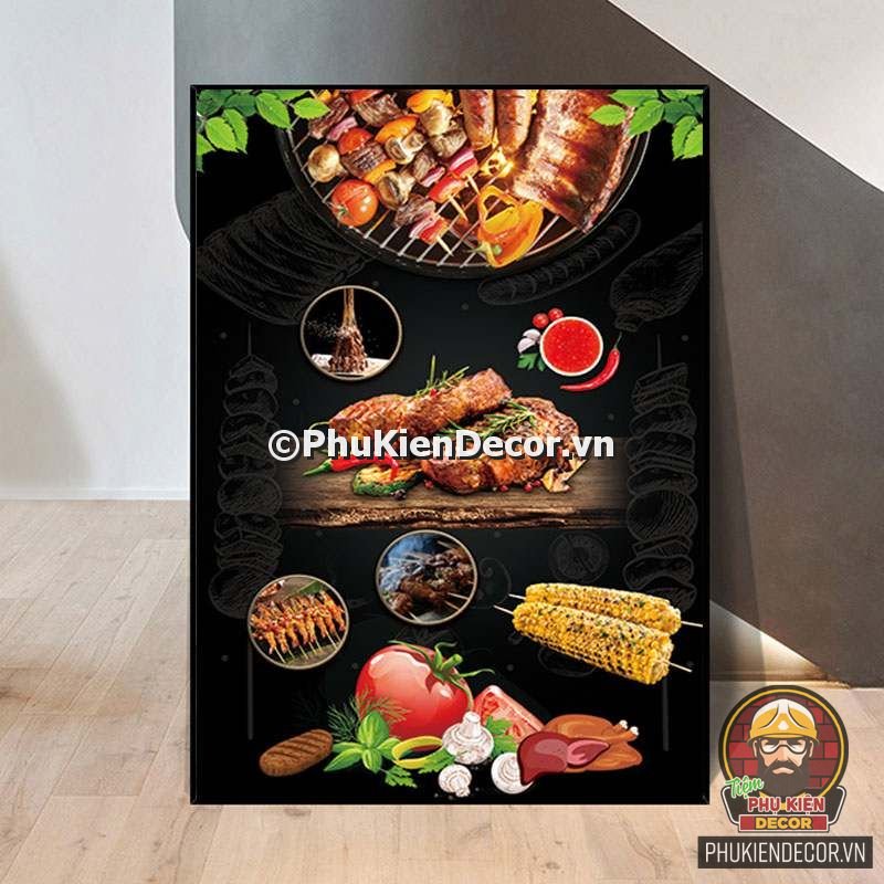 2. Tranh treo tường trang trí quán nướng với thiết kế màu sắc nổi bật, tươi tắn và hình ảnh, slogan vui nhộn, thú vị tạo nên không gian trải nghiệm món ngon và tận hưởng không khí thoải mái cho thực khách