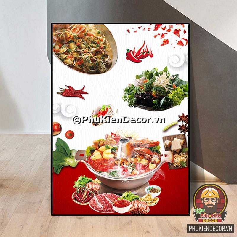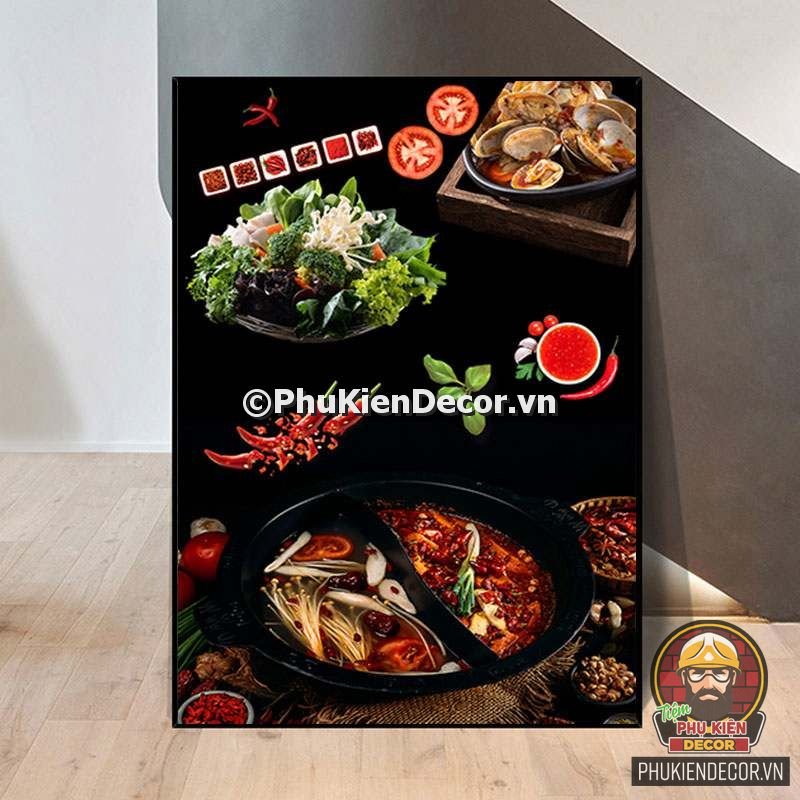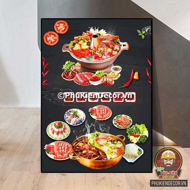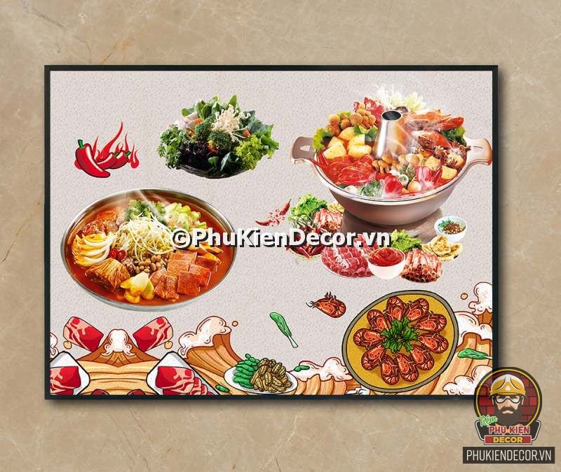 1. Tranh treo tường trang trí quán lẩu với đa dạng các món lẩu và các topping hấp dẫn, kích thích mong muốn thưởng thức của khách hàng